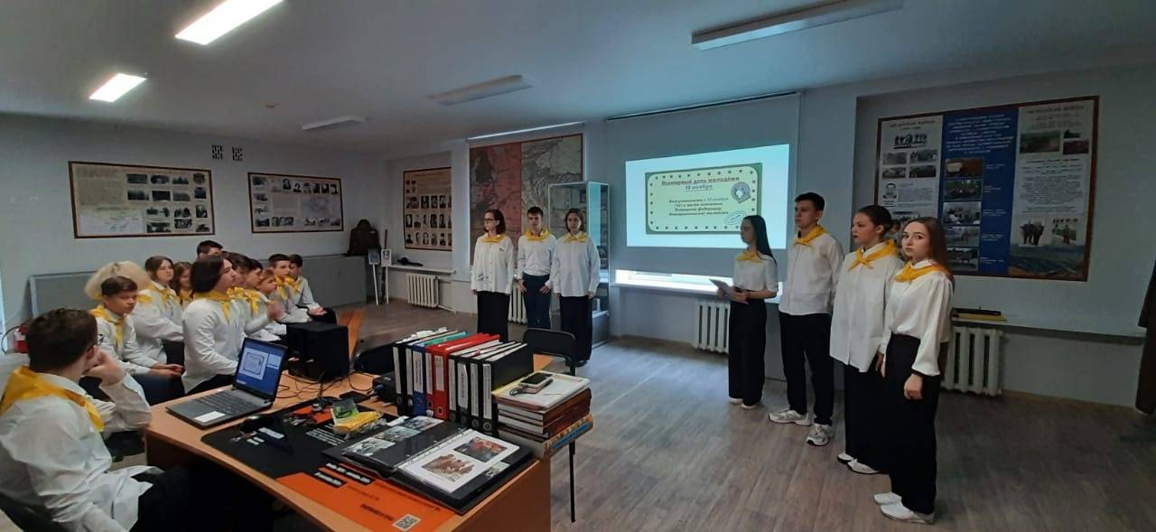 10 ноября 2022 г. во Всемирный день молодежи в г. Ставрополе на базе МБОУ СОШ №7 состоялось заседание членов клуба «Юный Патриот» Регионального отделения Российского военно-исторического общества в Ставропольском крае (РО РВИО СК) в формате музейного урока под руководством Лифановой Е.А., учителя русского языка и литературы, члена РО РВИО СК.