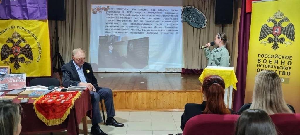 10 октября 2022 года в поселке Новоизобильный Изобильненского городского округа состоялась встреча, посвящённая героизму советских воинов в годы Великой Отечественной войны. Инициатором встречи выступило Местное отделение Ставропольского регионального отделения Российского военно-исторического общества (РО РВИО СК) в Изобильненском городском округе (председатель Н.И. Щендригин) при активном содействии сотрудников Дома культуры и поселковой библиотеки. На мероприятии присутствовала директор библиотечной системы городской библиотеки №2 г. Изобильного – Бредихина О.М. с коллегами. Встреча была организована для учащихся и учителей СОШ
