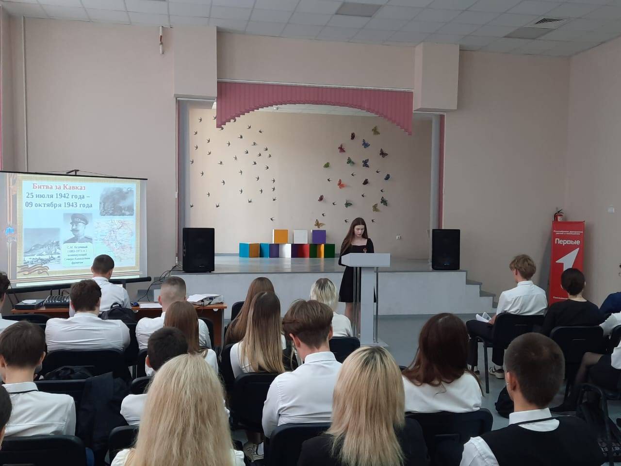 3 мая 2024 г. в МБОУ СОШ №1 им. А.К. Просоедова г. Георгиевска прошла конференция, посвящённая 79-ой годовщине Победы советского народа в Великой Отечественной войне, в ходе которой учащиеся 10-11 классов представили свои проекты по соответствующей тематике. В них они осветили такие события как Битва за Москву, Битва за Кавказ, блокада Ленинграда и другие важные сражения и операции Великой Отечественной войны. Организатором конференции стала Рогова Т.А., учитель истории и обществознания, член РО РВИО СК.