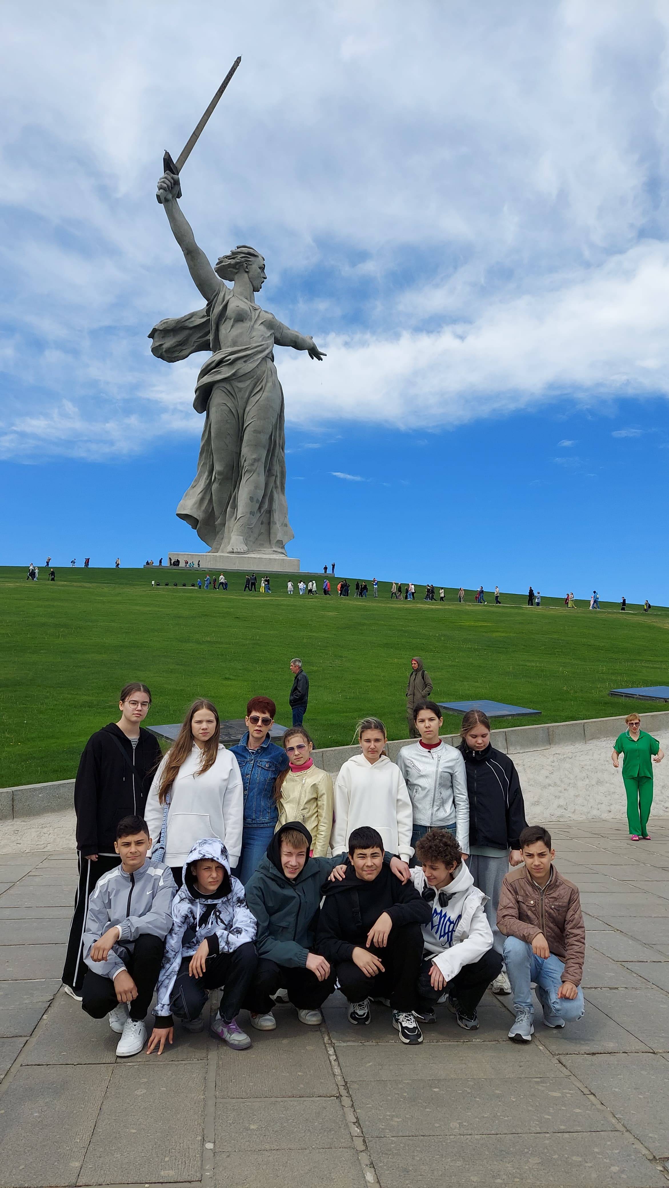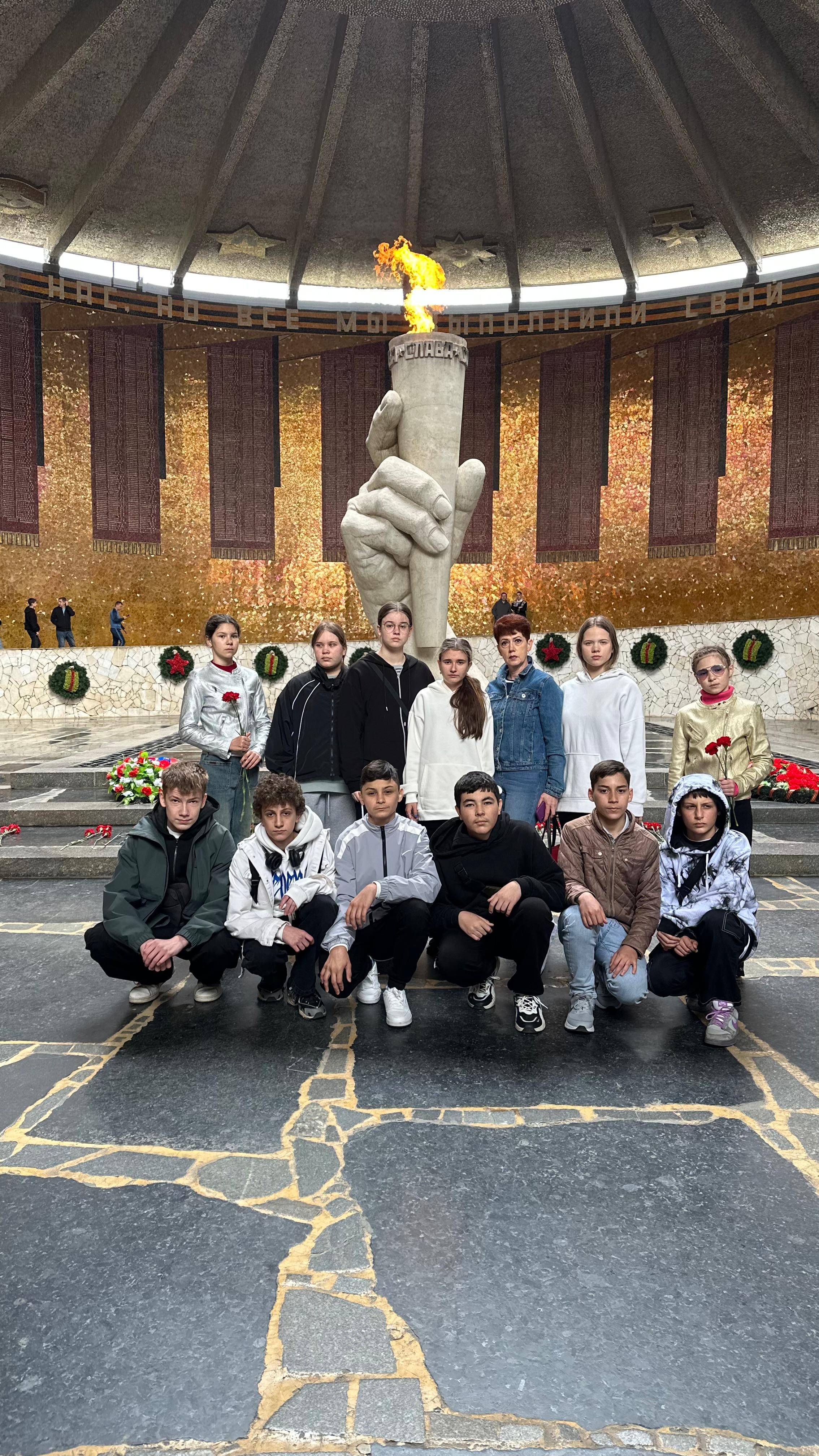 В преддверии 9 Мая Алексина Е.Ю., учитель истории и обществознания МБОУ гимназия №2 г. Георгиевска, председатель Местного отделения РО РВИО СК в Георгиевском городском округе, организовала поездку для учащихся 7А класса в город-герой Волгоград. Ребята посетили Мамаев курган, панораму Сталинградской битвы, «Остров Людникова», Солдатское поле, мемориальный комплекс в Россошках и другие памятные места и узнали много нового о Сталинградской битве и ее героях.