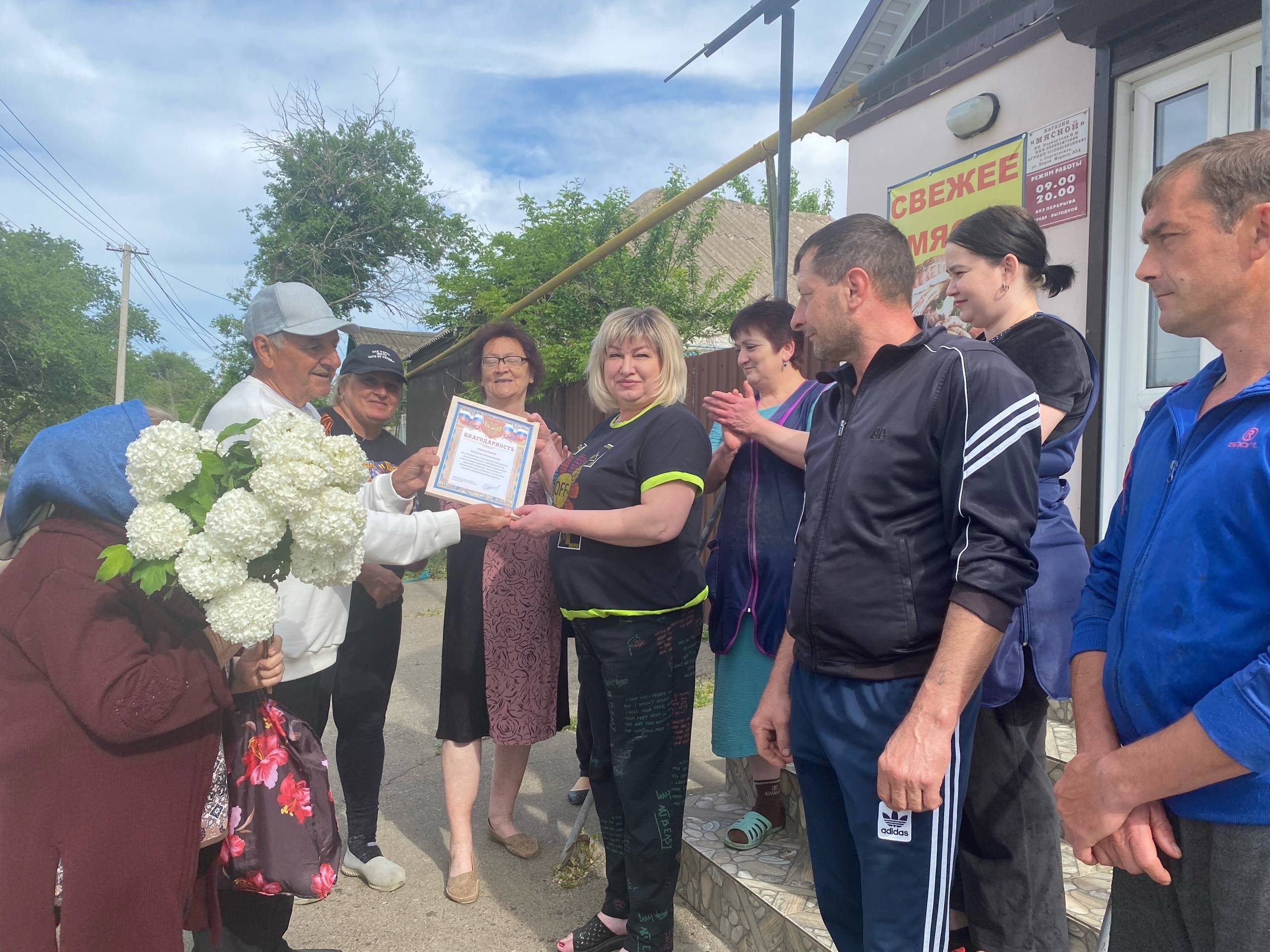 Также 3 мая 2024 г. в с. Сергиевском активисты Местного отделения РО РВИО СК в Грачёвском муниципальном округе поздравили с наступающим праздником – Днём Победы – семью Карнауховых, волонтёров, участников многочисленных акций в поддержку военнослужащих-участников СВО, и вручили им благодарственное письмо. Николай и Наталья неоднократно принимали участие в сборе гуманитарных грузов и отправляли на передовую необходимые продукты питания. Степаненко Н.И., председатель Местного отделения РО РВИО СК в Грачёвском муниципальном округе, выразил благодарность супругам и всему коллективу магазина «Мясной» за их активную помощь, поддержку и неравнодушие!