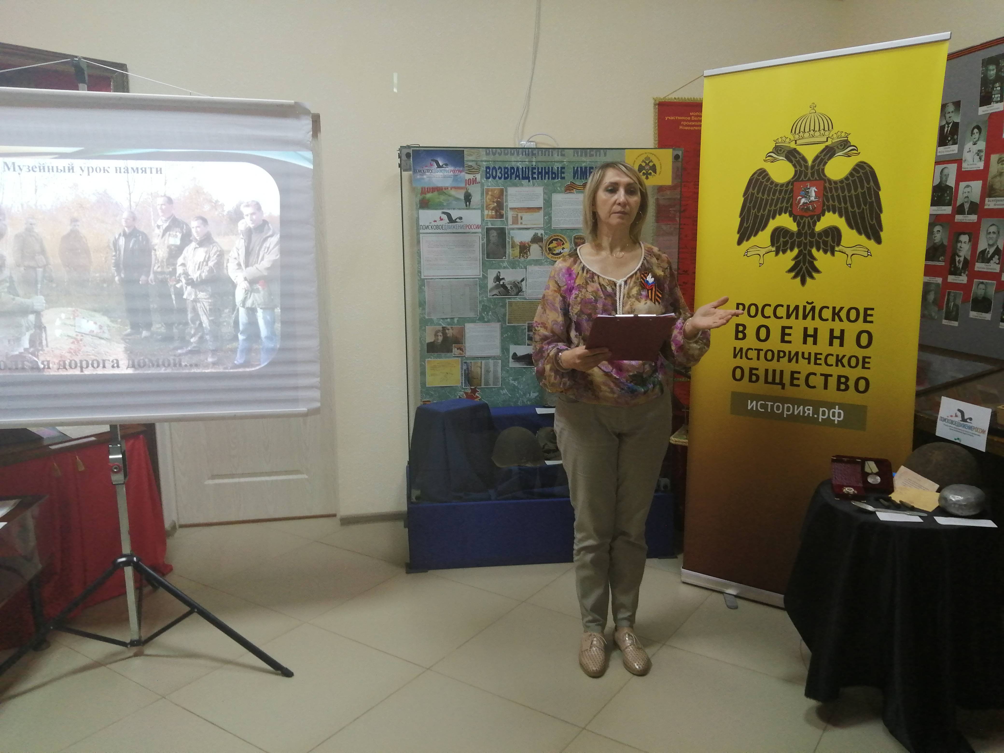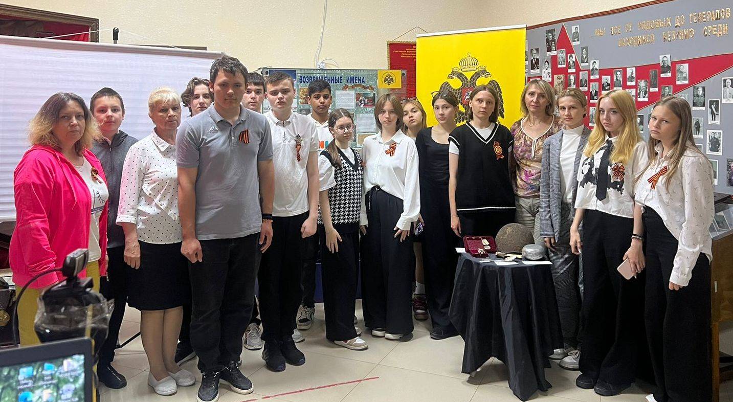 Так, 3 мая 2024 г. в преддверии Дня Победы в Новоалександровском районном музее прошёл урок памяти «Долгая дорога домой», посвящённый поисковому движению в России. Участниками мероприятия стали учащиеся 7-8 классов МОУ СОШ №12 и МОУ «Гимназия №1 г. Новоалександровска». В ходе мероприятия ребята узнали о деятельности поисковых отрядов на местах сражений Великой Отечественной войны. Младший научный сотрудник музея Герасимова М.Ф., член РО РВИО СК, поделилась своим опытом участия в Международных военно-исторических поисковых экспедициях, организуемых Российским военно-историческим обществом (РВИО), и продемонстрировала предметы, найденные в ходе поисковых работ, а экскурсовод Скрипникова Л.А., член РО РВИО СК, показала ребятам алгоритм работы с электронными поисковыми ресурсами, в которых содержатся сведения об участниках Великой Отечественной войны. В режиме онлайн гости мероприятия смогли пообщаться с поисковиками-членами РВИО, участниками поискового отряда «Подвиг» из г. Сочи. Также большое впечатление на учащихся оказали видеоролики с торжественных перезахоронений в 2018 г. на родной земле солдат-новоалександровцев – Рыжкова Т.А. и Рыбалкина С.И. Школьники пришли к выводу, что поисковые работы являются важной составляющей деятельности по сохранению памяти о подвиге великого народа.