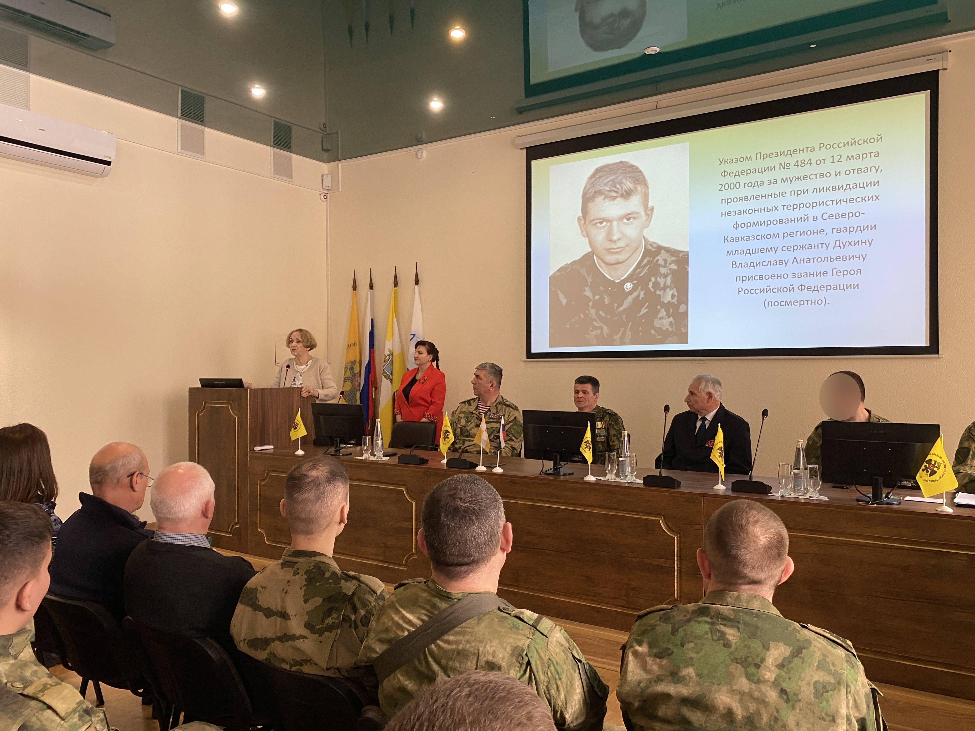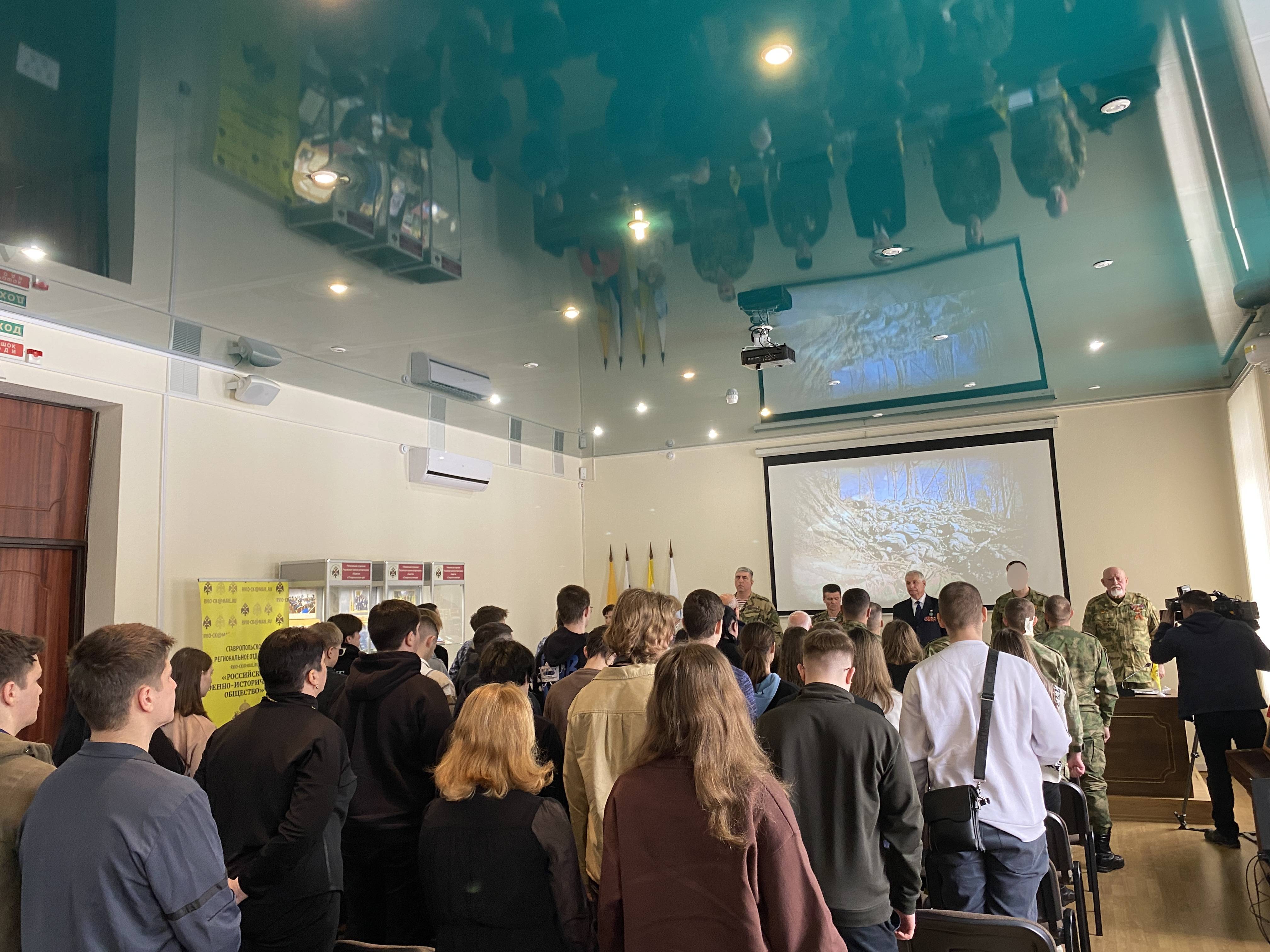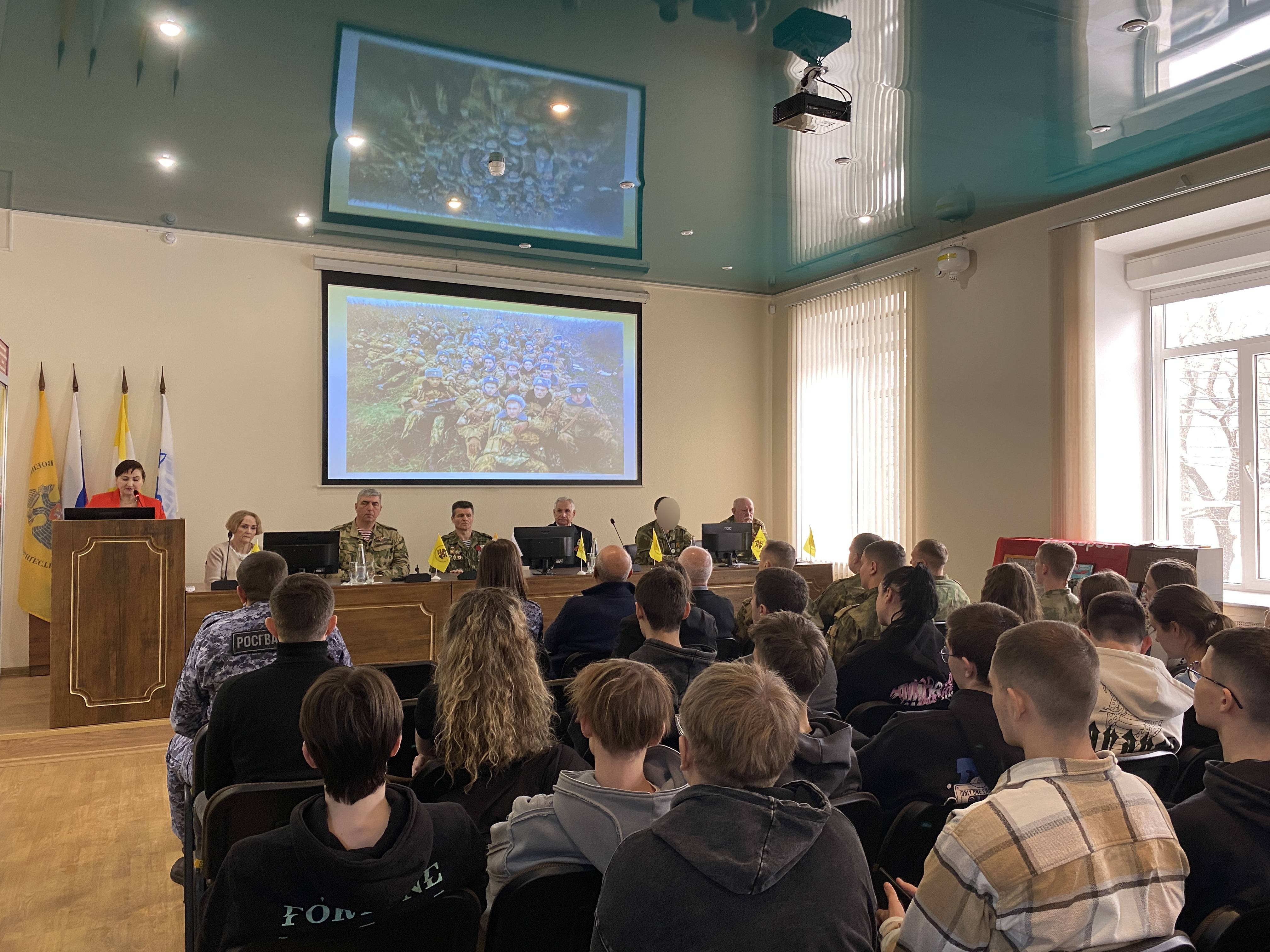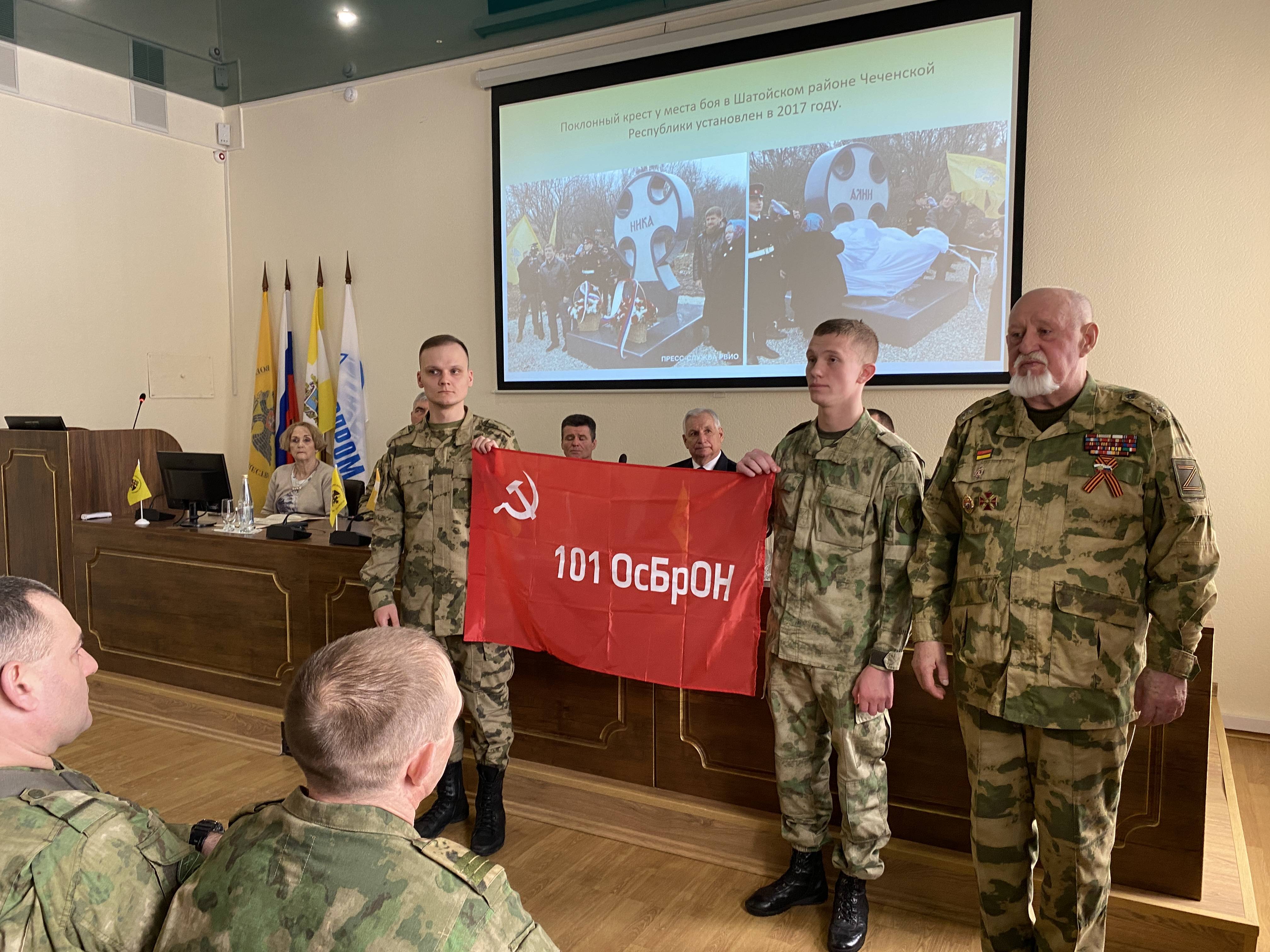 Ветераны боевых действий поделились своими воспоминаниями о службе, о том, как они узнали о подвиге 6-й роты, дали напутственные слова учащейся молодежи. Медяник В.Т. подарил в фонды РО РВИО СК боевое знамя 101 ОсБрОН, фотографии участников Чеченской войны и специальной военной операции.