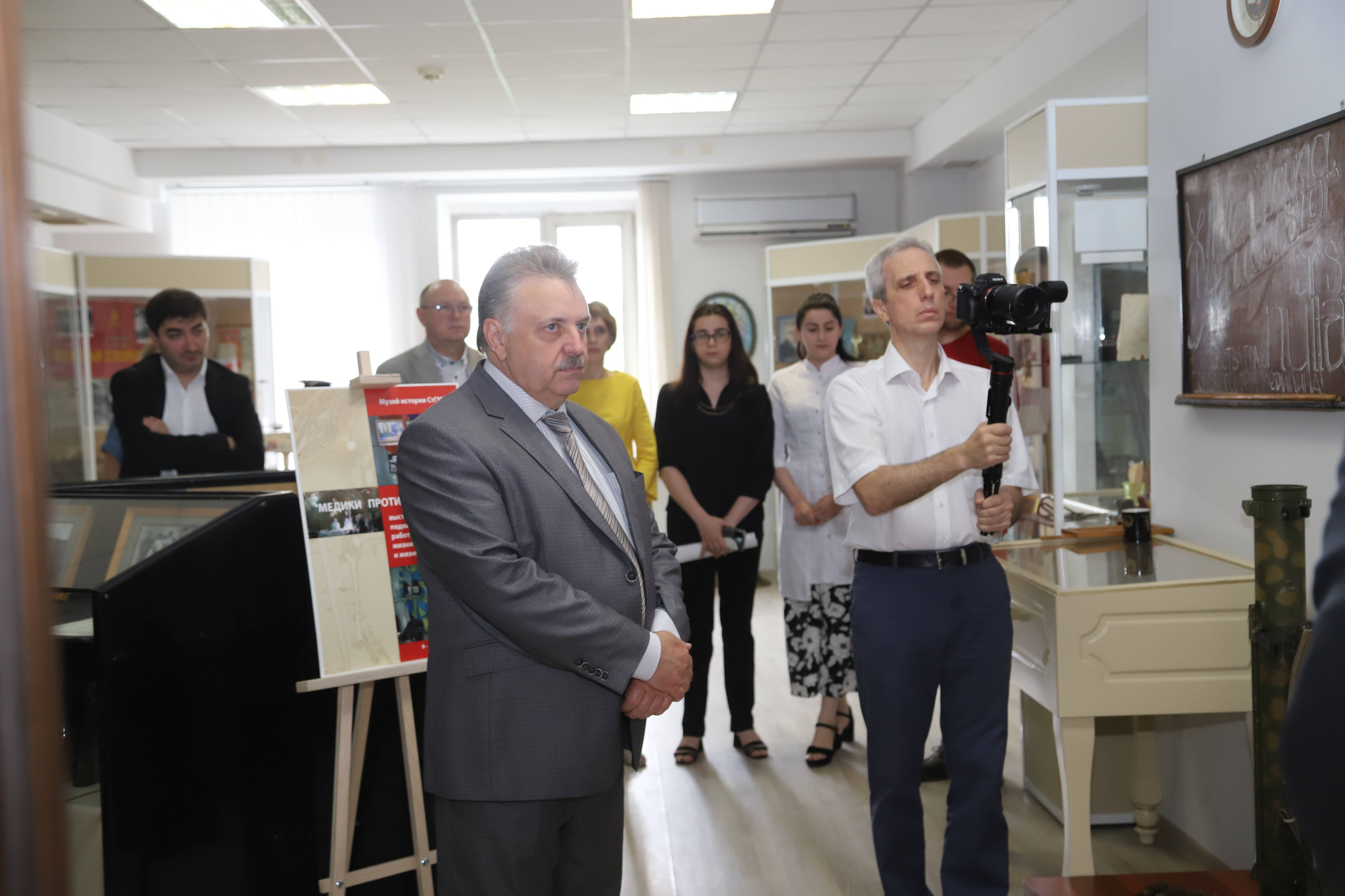 На торжественном открытии выставки присутствовали: руководство, преподаватели и студенты СГМУ, Карташев И.В., к.и.н., методист ГБУК СК «Музейно-выставочный комплекс «Моя страна. Моя история», член РО РВИО СК.