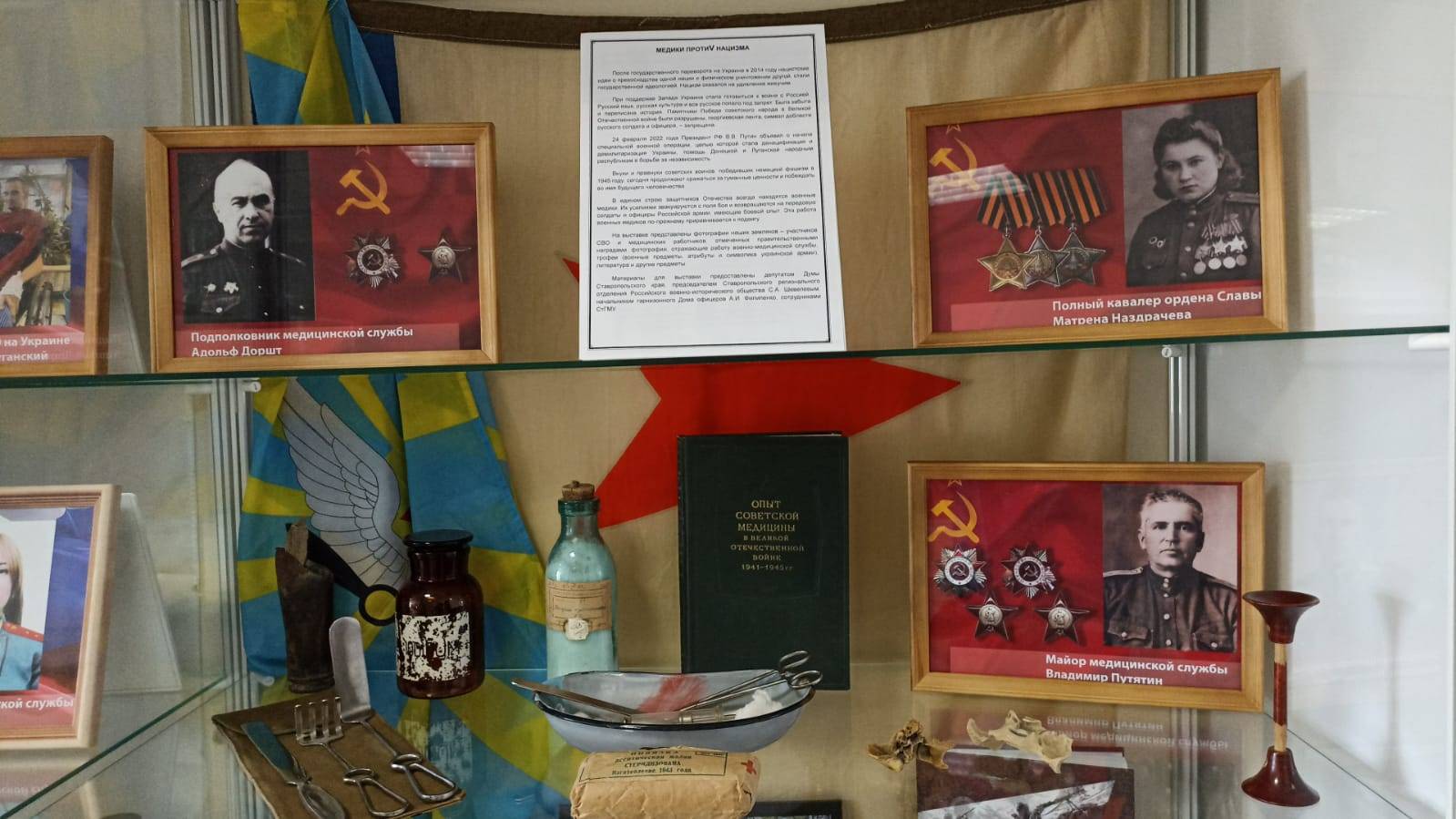 9 июня 2022 года на базе музея истории ФГБОУ ВО «Ставропольский государственный медицинский университет» (СГМУ) открылась выставка «Медики протиV нацизма», посвященная подвигу медиков и подготовленная на основе материалов, предоставленных депутатом Думы Ставропольского края, председателем РО РВИО СК, кавалером трех орденов Мужества, полковником С.А. Шевелевым, начальником гарнизонного Дома офицеров, членом РО РВИО СК А.И. Филипенко, председателем Совета ветеранов СВВАУЛШ-СВВАИУ, членом РО РВИО СК В.В. Москаленко, сотрудниками СтГМУ. Содействие оказали депутат Думы Ставропольского края В.Н. Муравьева, председатель профсоюзного комитета университета А.Д. Калоев.
