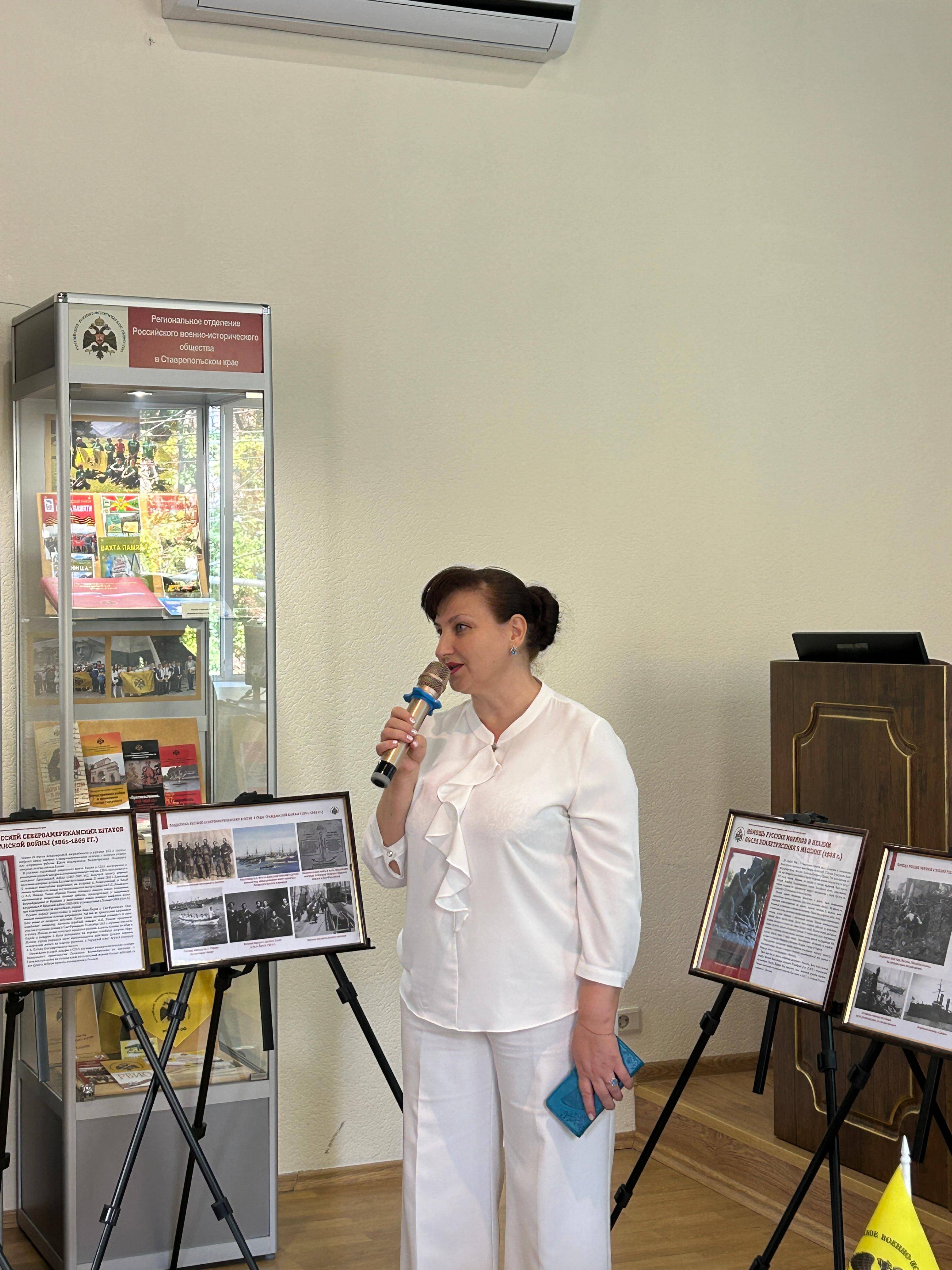 Выставка была представлена зав. отделом военной истории и патриотической работы Ставропольского государственного музея-заповедника (СГМЗ), исполнительным директором РО РВИО СК Каменевой Г.Н. В ходе презентации были представлены видеомиксы, отражающие интернациональную помощь российских военнослужащих.
