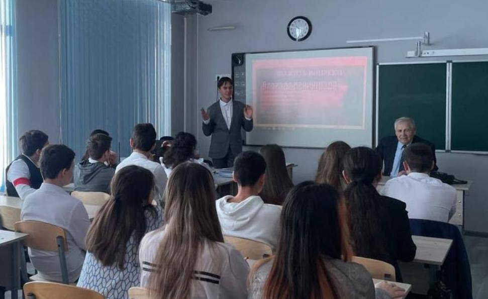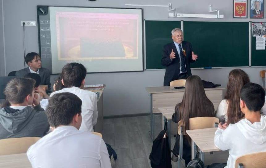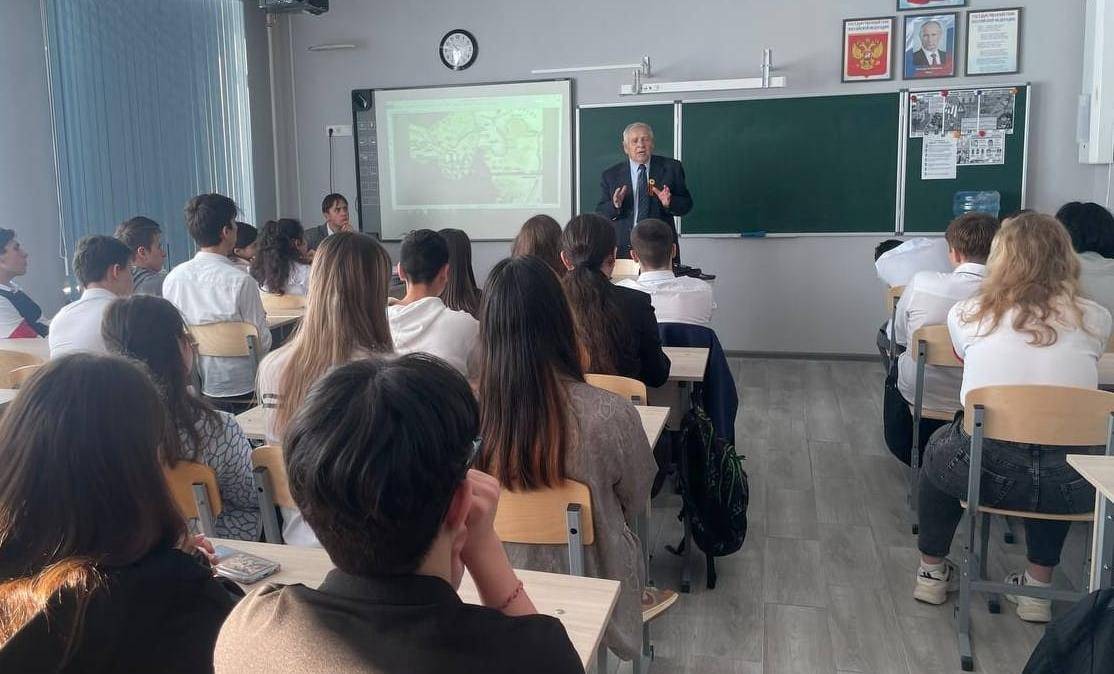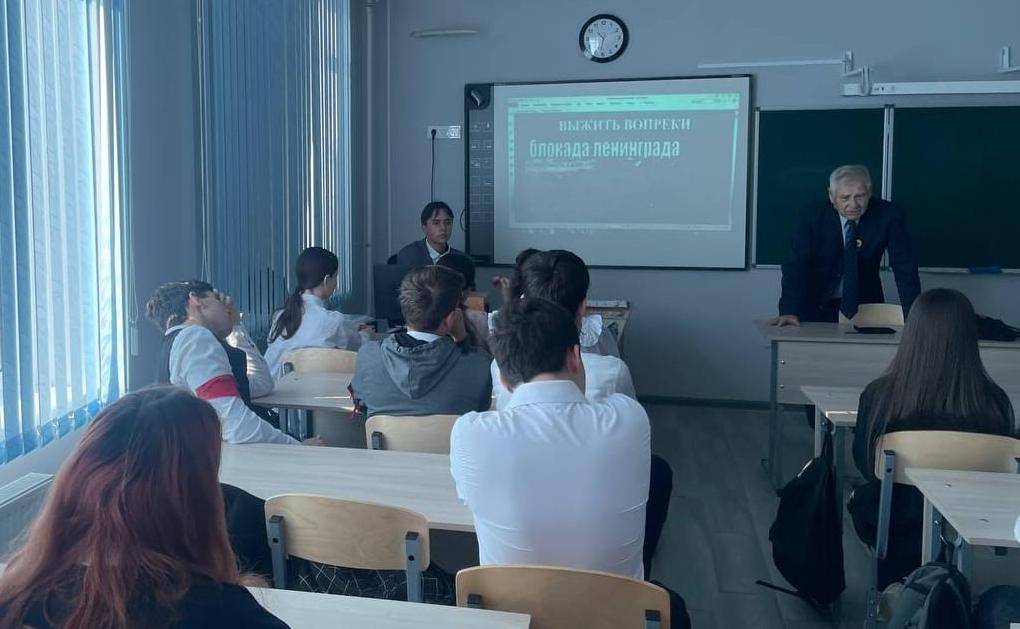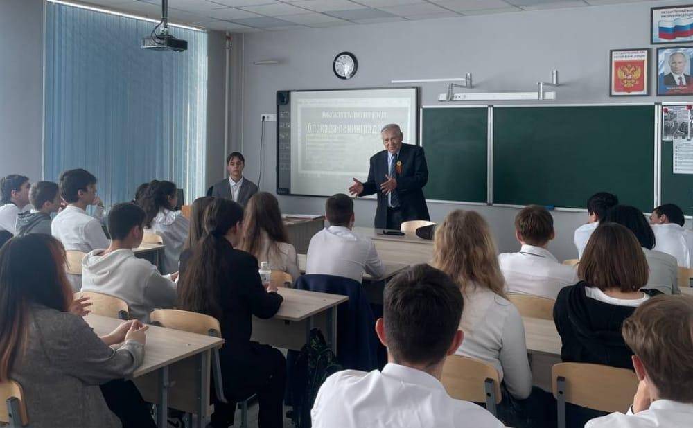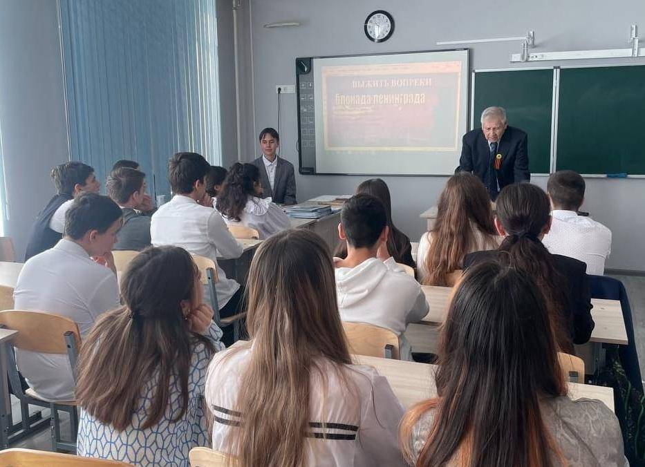 Профессор Н.Д. Судавцов рассказал ученикам о ключевых моментах истории блокадного города, об эвакуации жителей на территории Ставрополья и Карачаево-Черкесии. Он также поделился своими воспоминаниями о жизни в годы Великой Отечественной войны, рассказал ребятам о посещении знаменитого аула Бесленей, где были усыновлены и спасены дети, вывезенные из Ленинграда. Школьники с большим интересом слушали истории из жизни Николая Дмитриевича и принимали активное участие в мероприятии.