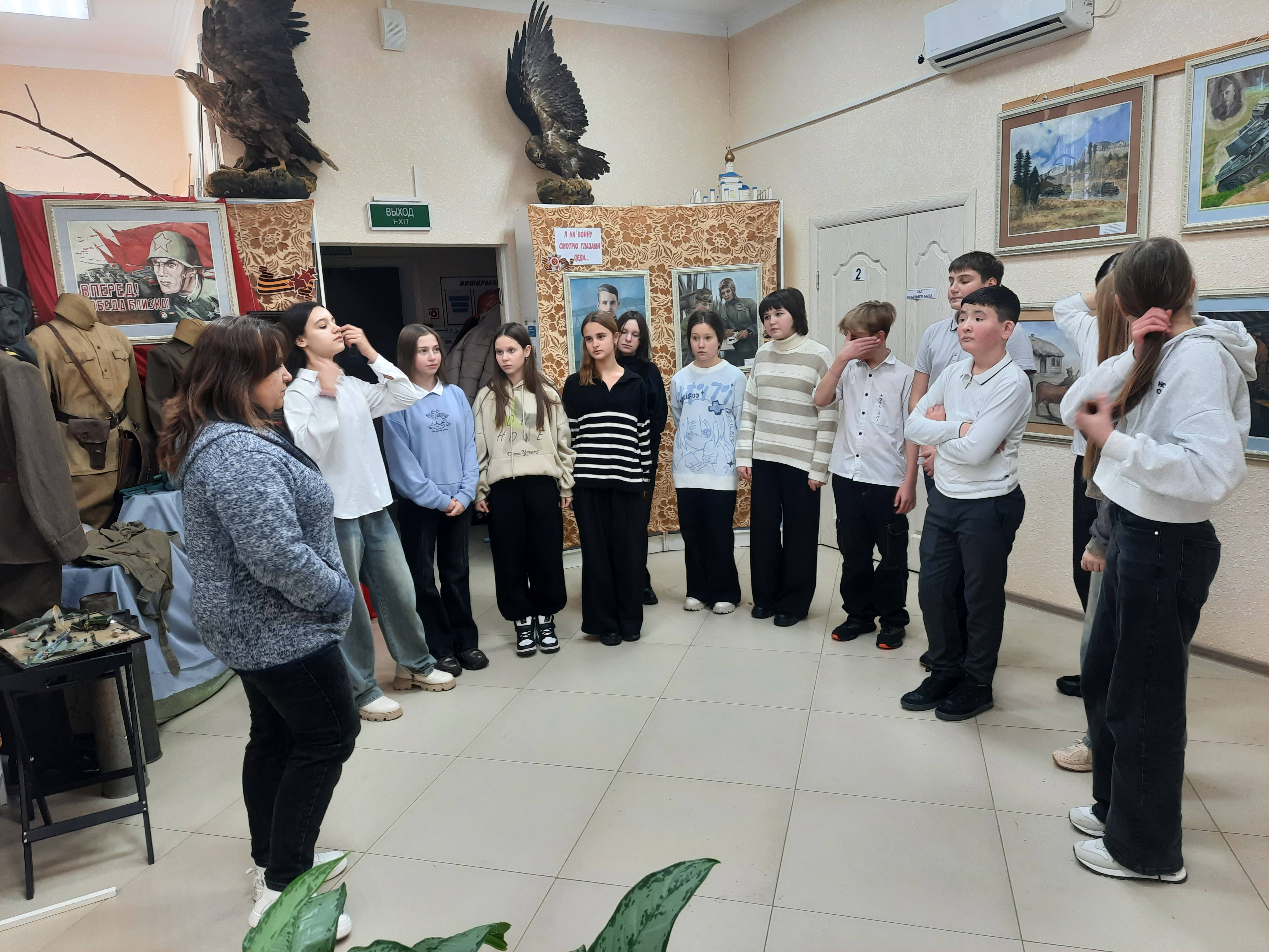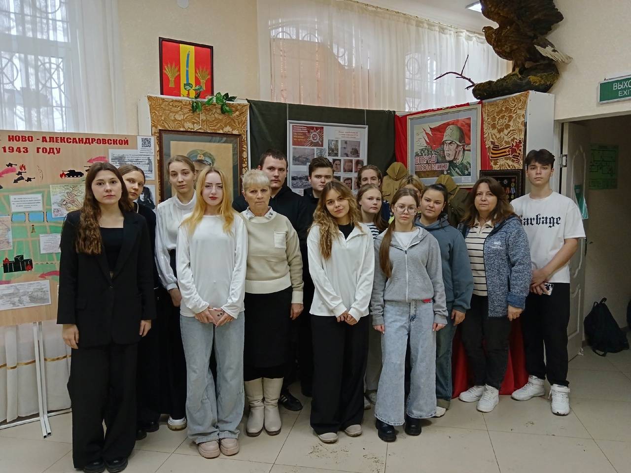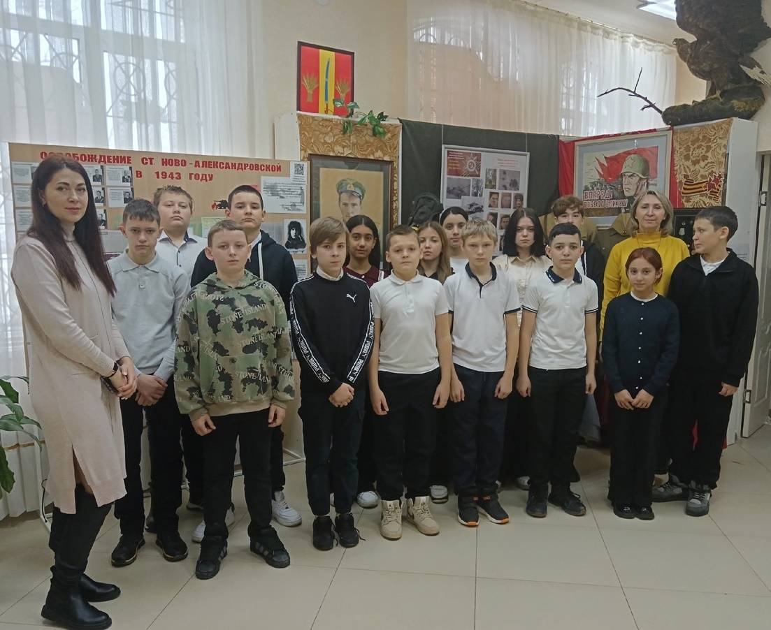 Особый интерес у ребят вызвал рассказ сотрудников музея о периоде оккупации и освобождении станицы Ново-Александровской в 1942-1943 гг.: свидетельства и воспоминания очевидцев тех событий, фотографии героев-освободителей и сведения о братских захоронениях района и города. Большой отклик у обучающихся получила выставка творческих работ Детской художественной школы г. Новоалександровска: ребята смогли увидеть войну глазами её очевидцев, всю боль и ужас военного лихолетья.