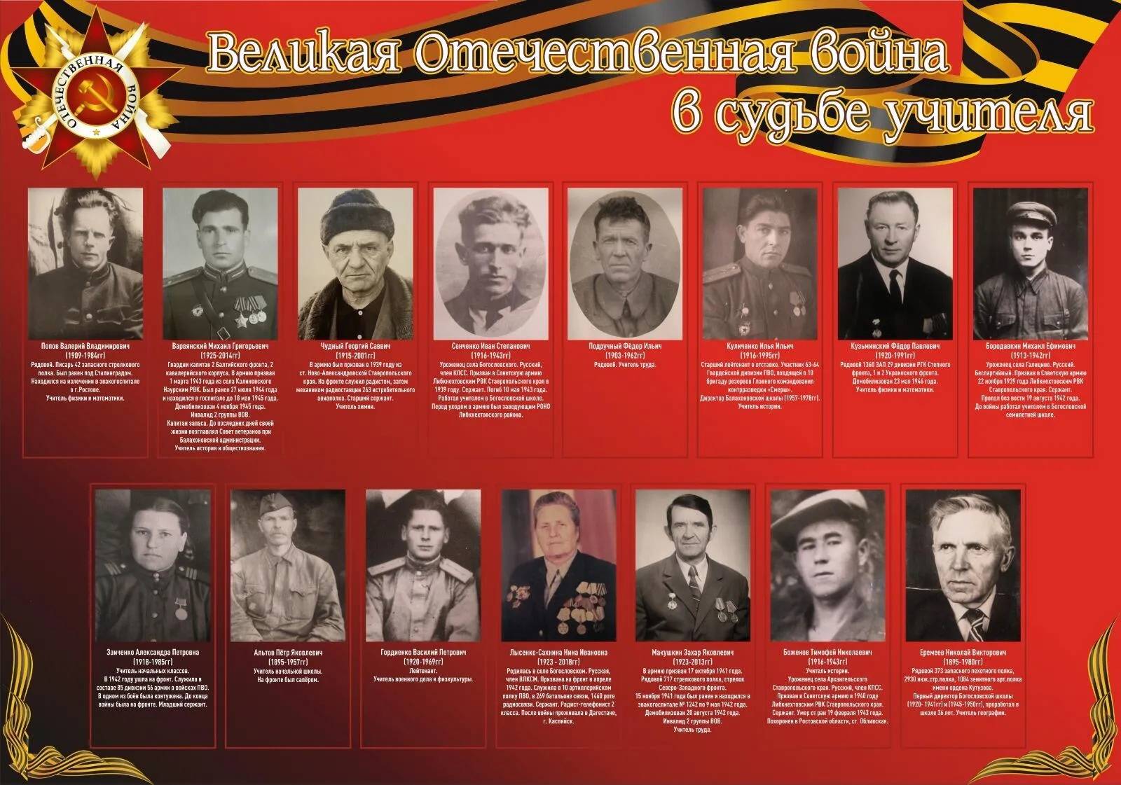 Так, в МКОУ СОШ №5 с. Балахоновского Кочубеевского муниципального округа (директор – Шульгина И.В., член Местного отделения РО РВИО СК в Кочубеевском муниципальном округе (председатель – Котов С.Н.)) при содействии Кочубеевского историко-краеведческого музея им. Я.Ф. Балахонова (методист по образовательной деятельности – Немыкина Е.В., член РО РВИО СК) состоялось торжественное открытие информационных стендов, посвящённых памяти земляков, вставших на защиту страны и её интересов в ходе военных конфликтов разных лет: «Герои Советского Союза–жители села Богословского»; «Великая Отечественная война в судьбе учителя» (об учителях–участниках Великой Отечественной войны); «Я сердце не предам, я знаю, все отдам, чтобы жила моя Россия» (об участниках Специальной военной операции, погибших при выполнении воинского долга».