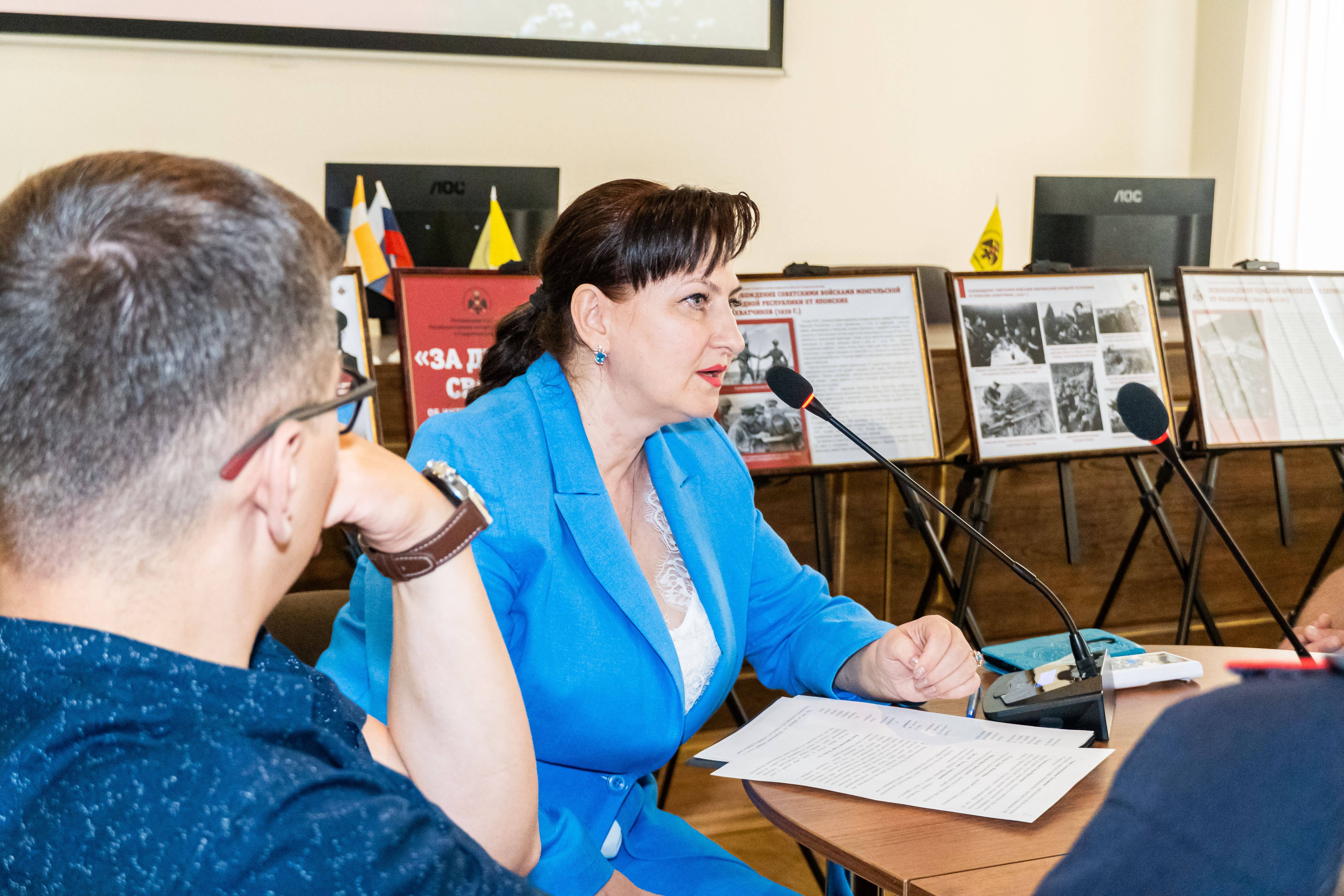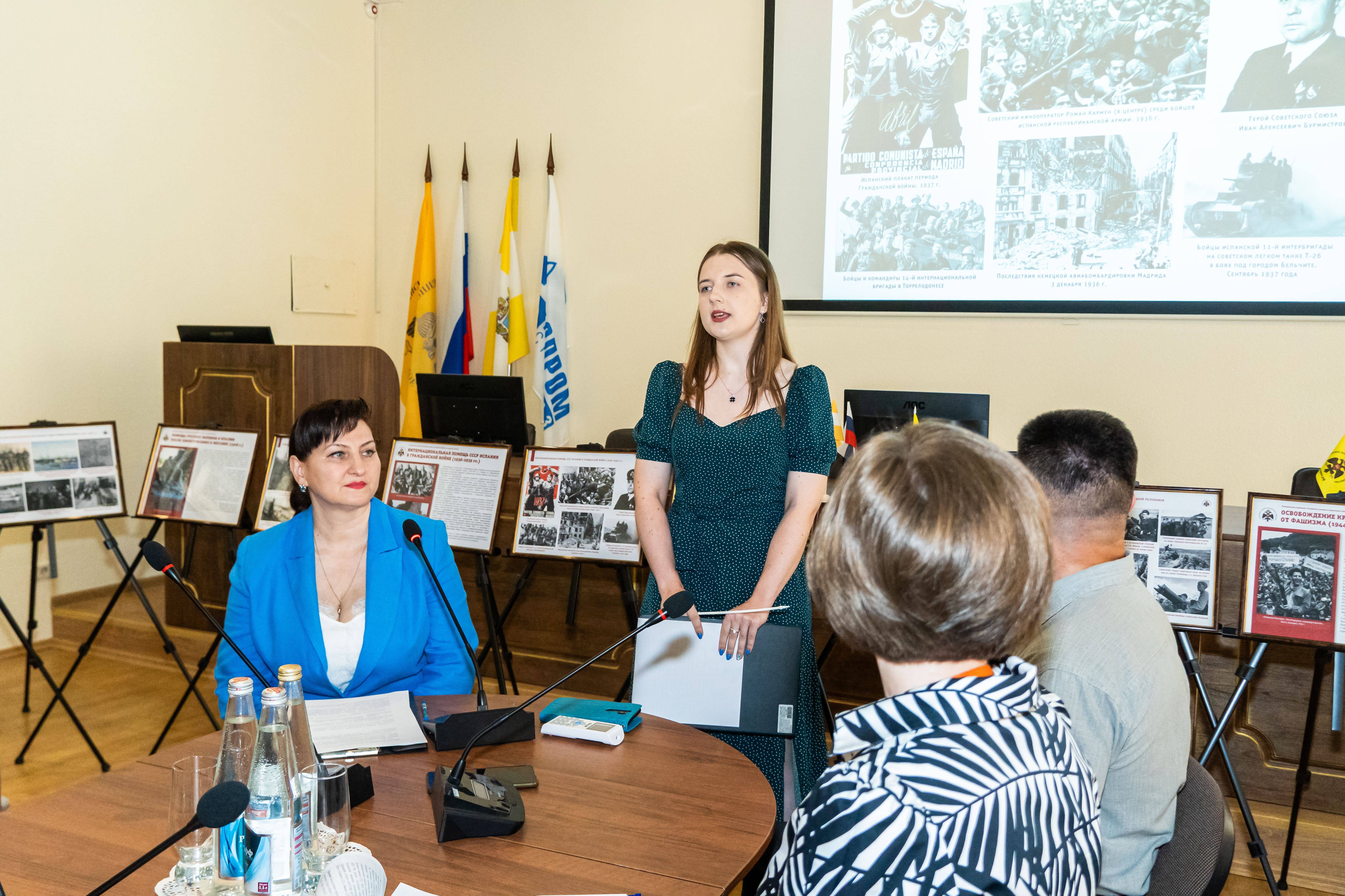 Церемонию презентации вела Каменева Г.Н., к.и.н., зав. отделом военной истории и патриотической работы СГМЗ, исполнительный директор РО РВИО СК.