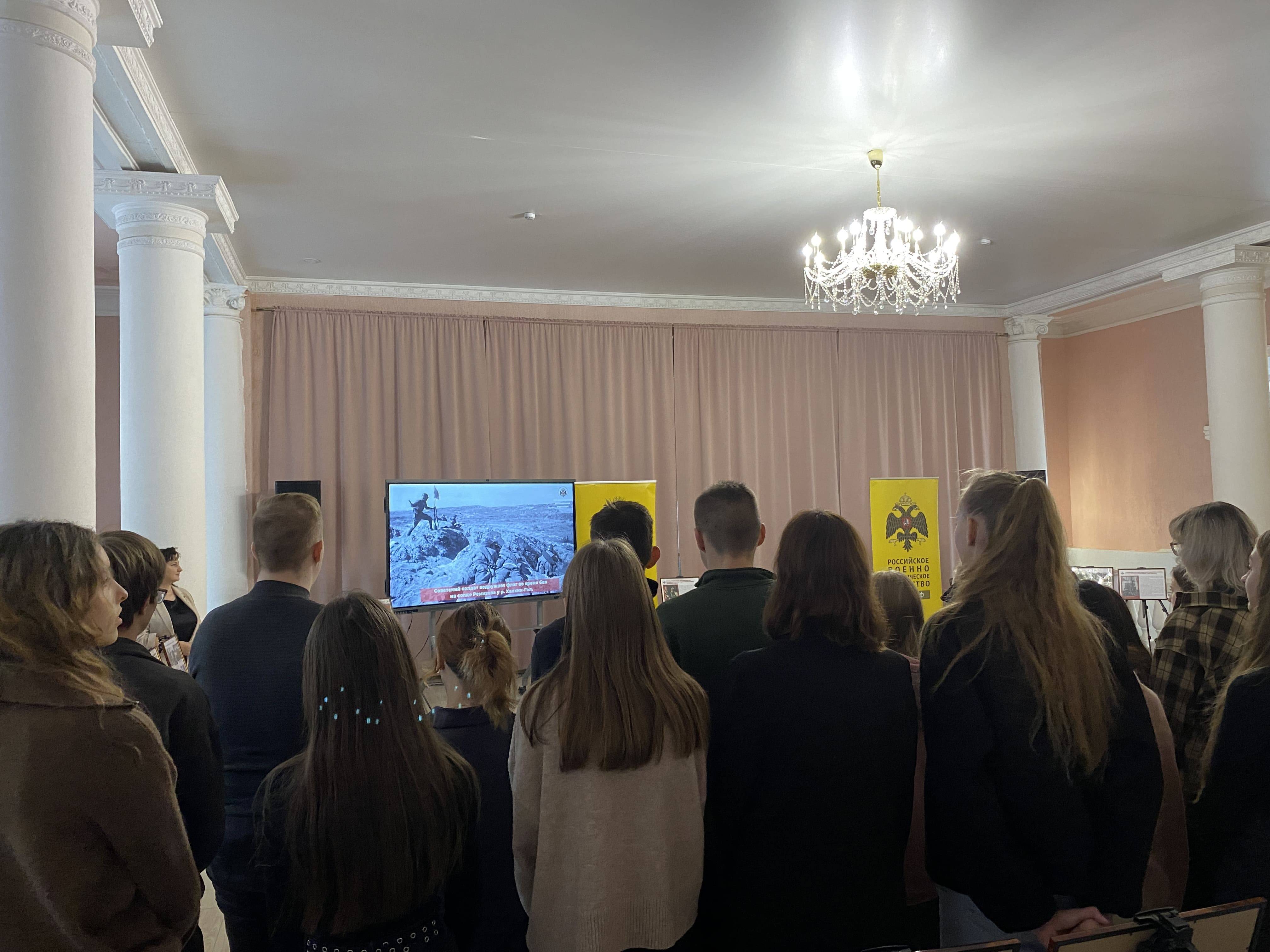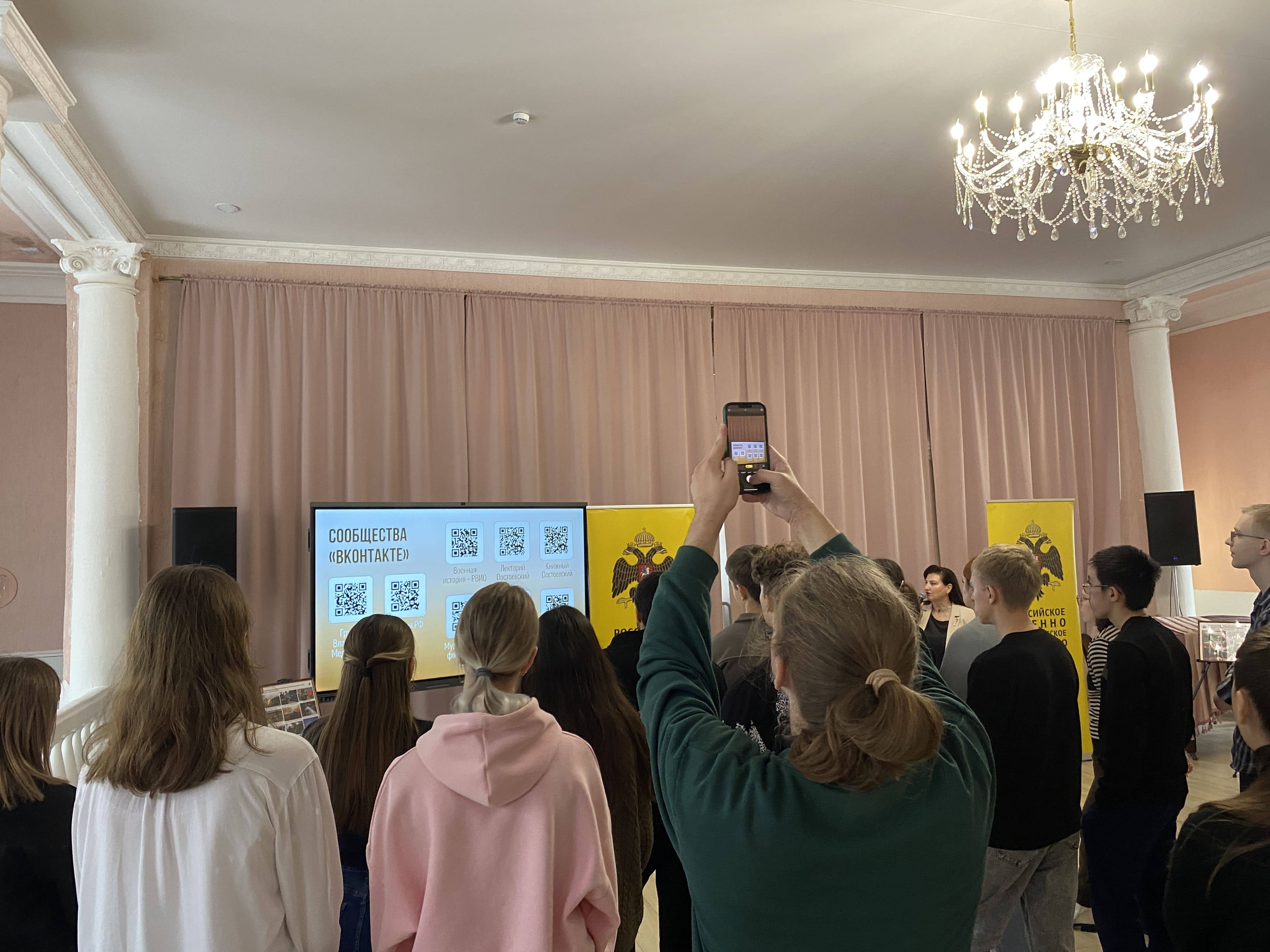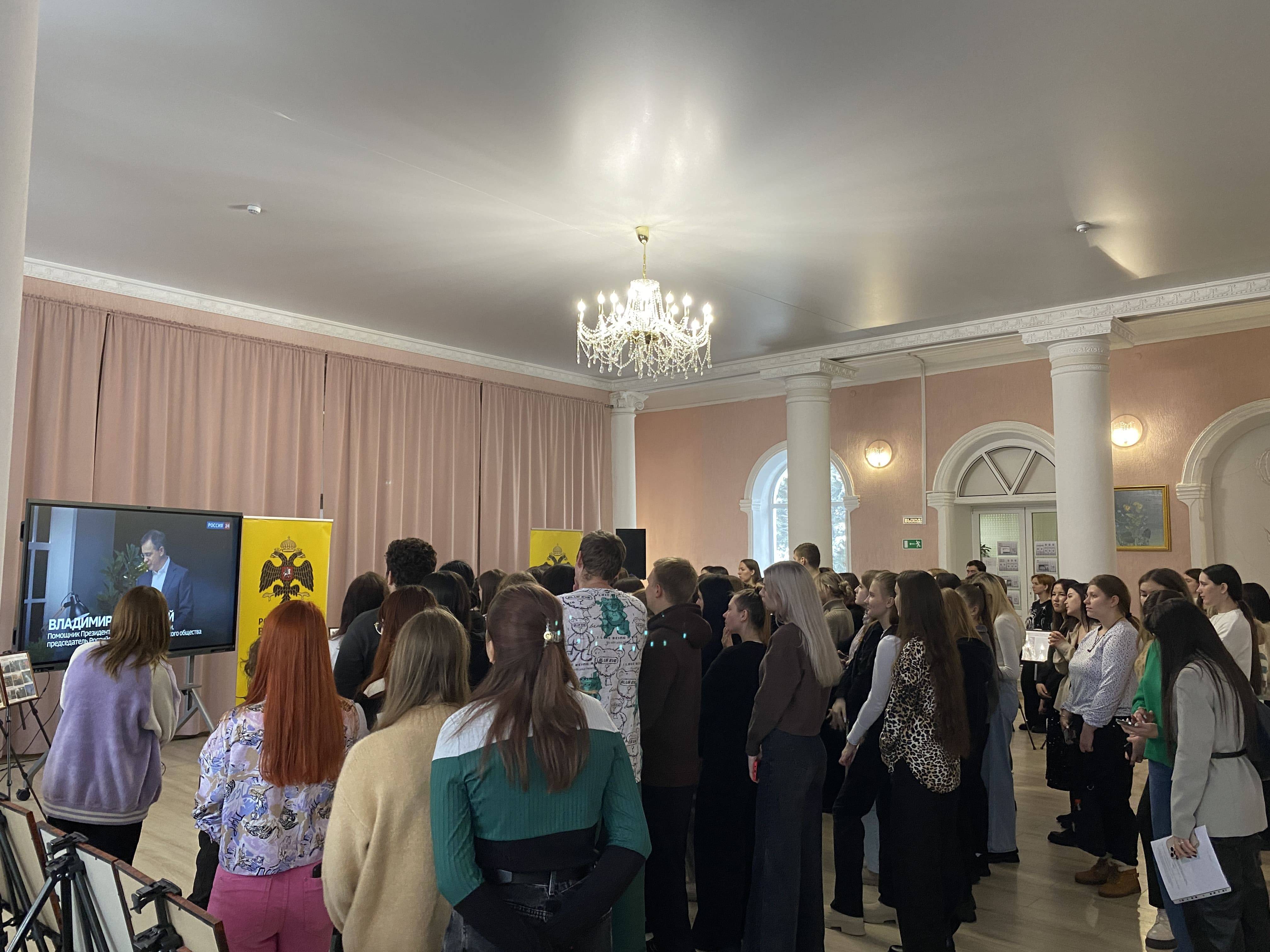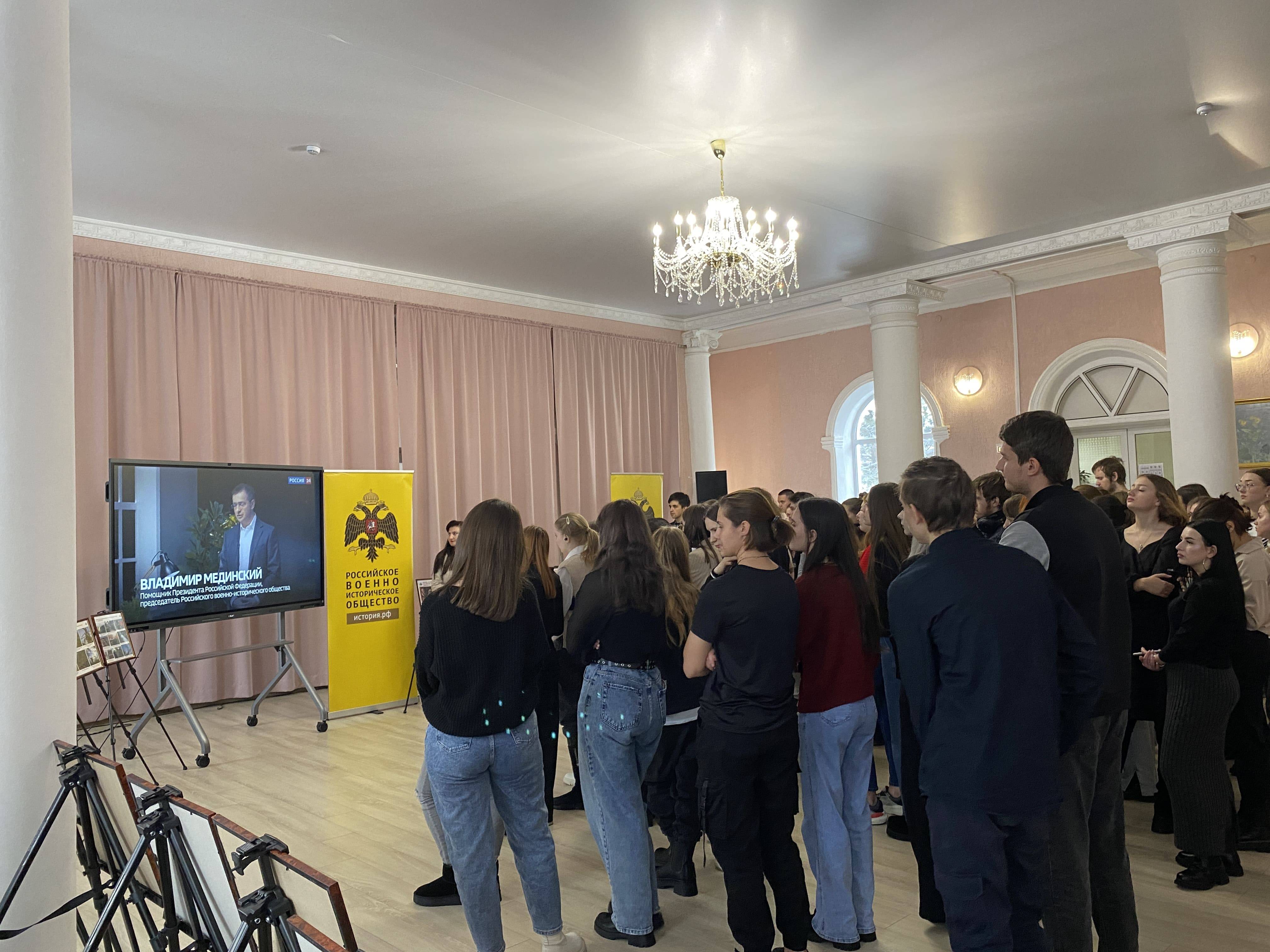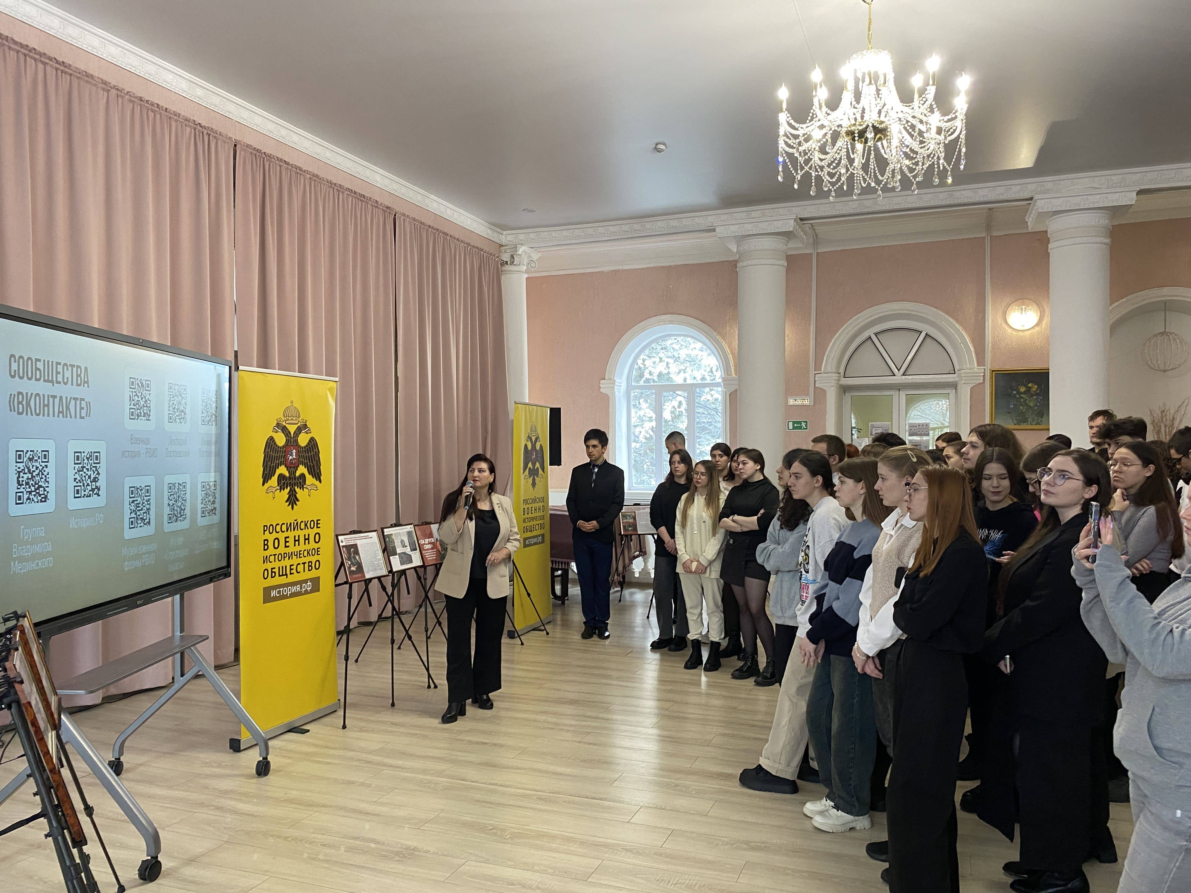 На презентации выставочного проекта присутствовало руководство вуза, проректор по стратегическому развитию и цифровизации образовательного процесса, член РО РВИО СК Леонова Н.А., проректор по научно-исследовательской работе и инновациям Кулешин М.Г., заместитель начальника по лицензированию и государственной аккредитации Андреева Е.А., начальник диспетчерского отдела центра учебно-методического сопровождения образовательного процесса Коломыцева К.С., сотрудники управления по работе с молодёжью.