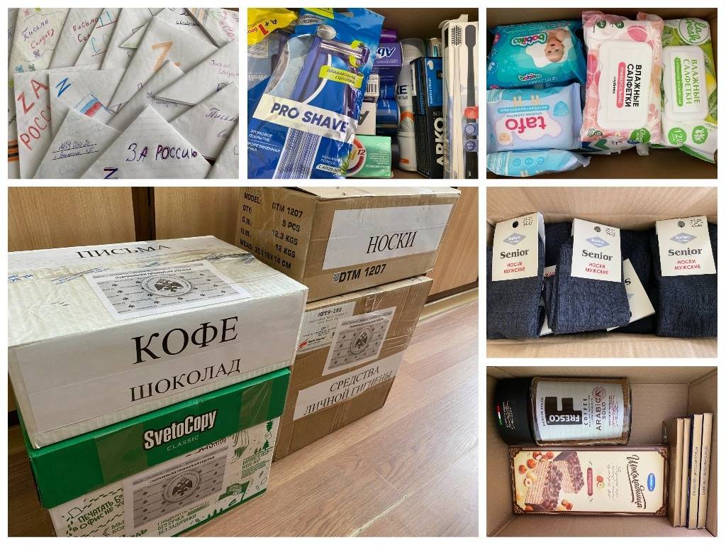 Значительную часть посылок составили средства личной гигиены. Гуманитарный груз был собран усилиями членов РО РВИО СК: сотрудников отдела военной истории и патриотической работы Ставропольского государственного музея-заповедника (СГМЗ); Сиушкиной Е.А., специалиста по персоналу СГМЗ; учащихся МБОУ СОШ №7 г. Ставрополя под руководством педагогов Е.А. Лифановой, С.В., Скляровой, Л.П. Васильченко. Посылки в адрес бойцов были также собраны под руководством Медяника В.Т., председателя общественной ветеранской организации Управления Росгвардии по Ставропольскому краю, Почетного ветерана г. Ставрополя, полковника в отставке, члена РО РВИО СК.