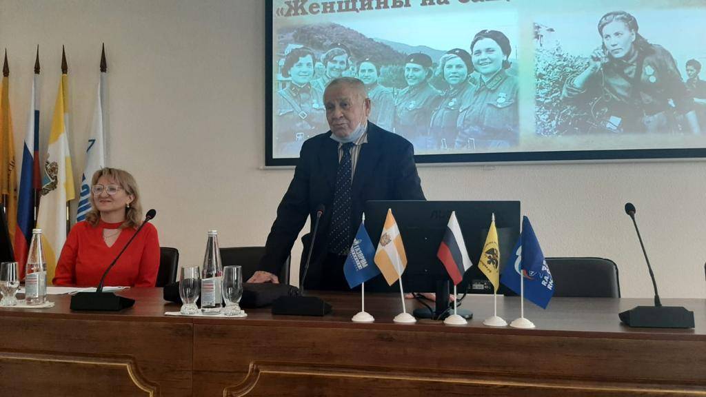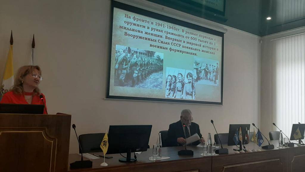 Каменева Г.Н., к.и.н., зав. отделом военной истории и патриотической работы СГМЗ, исполнительный директор РО РВИО СК в своем выступлении представила вклад женщин Северного Кавказа в победу в годы Великой Отечественной войны.