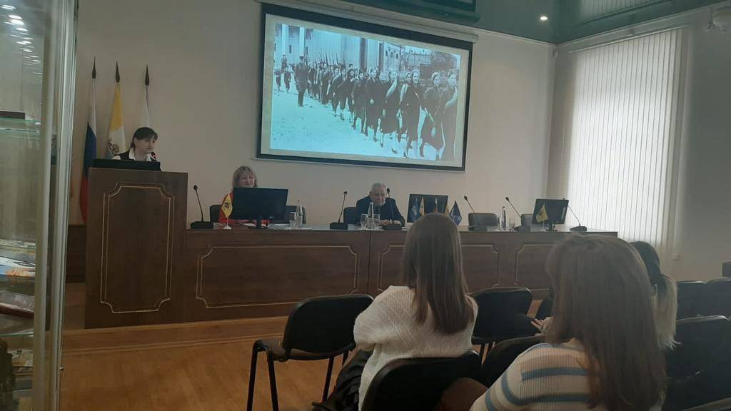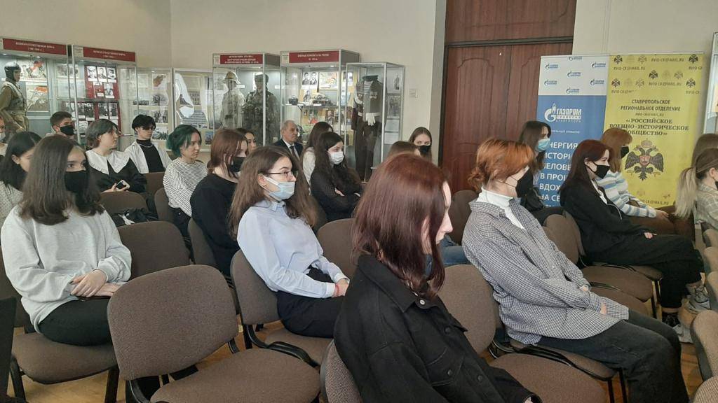 Вел мероприятие Н.Д. Судавцов, д.и.н., Почетный профессор СКФУ, главный научный сотрудник отдела военной истории и патриотической работы СГМЗ, один из учредителей РО РВИО СК. Он провел исторический экскурс об участии женщин в военных конфликтах, их роли в защите Отечества, приведены в качестве примера образы героинь: Василисы Кожиной, Марии Бочкаревой, Риммы Ивановой, Марины Расковой, Евдокии Бершанской, Зои Космодемьянской, Людмила Павличенко, Анны Шилиной, комсомолок-подпольщиц с. Величаевского Ставропольского края, Матрены Наздрачевой и многих других.