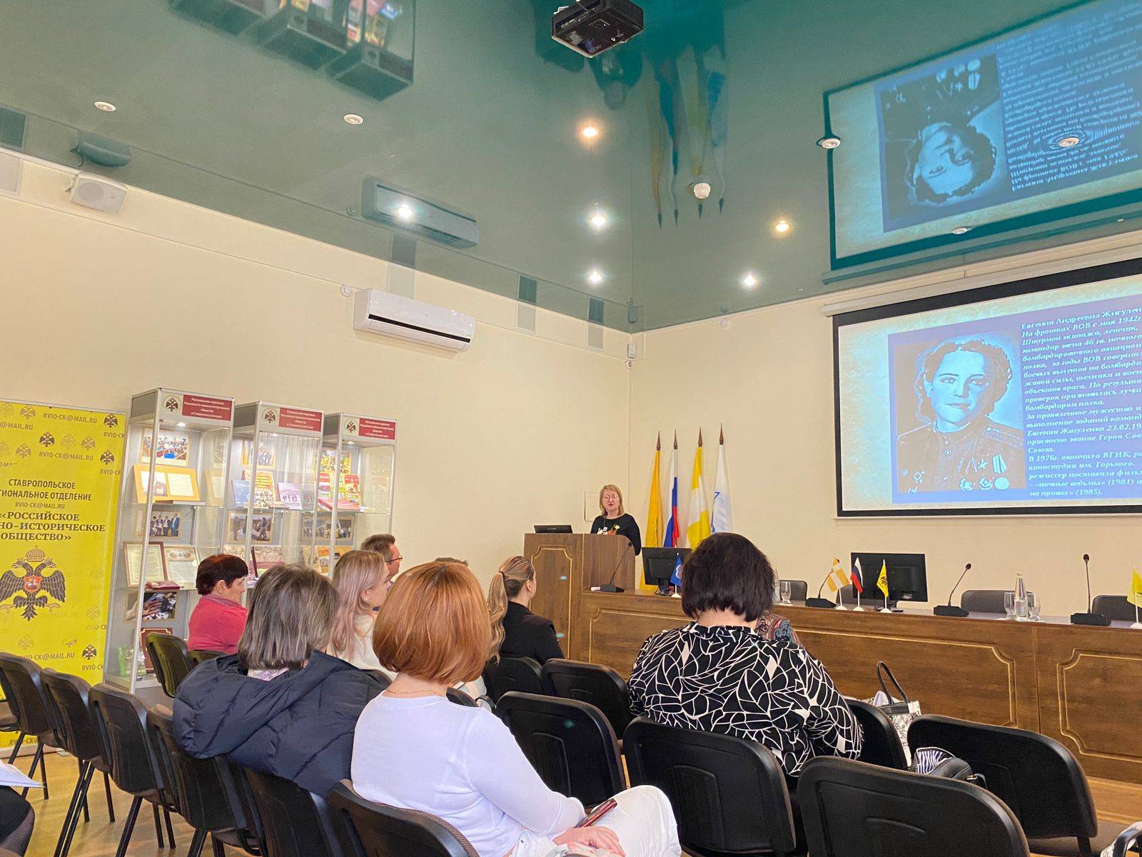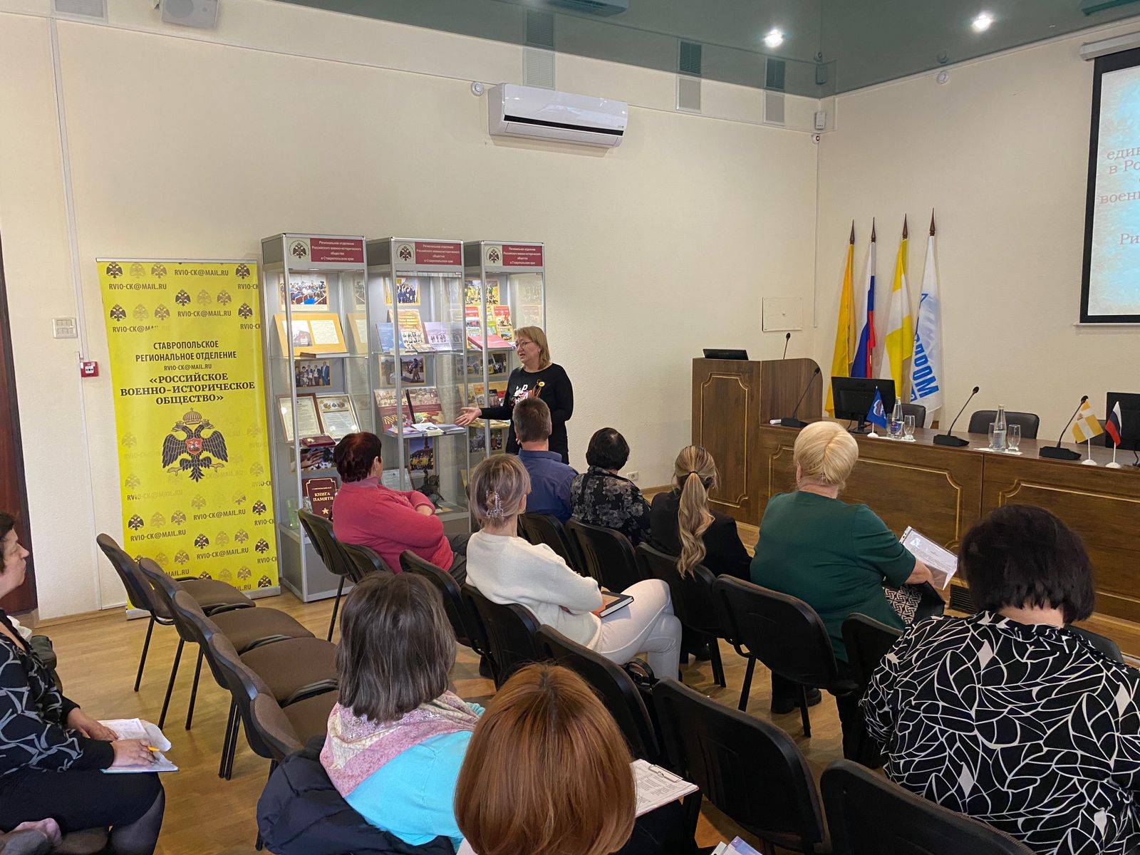 Ведущим лектором выступила Стрекалова Е.Н., к.и.н., доцент кафедры истории России Северо-Кавказского федерального университета, старший научный сотрудник отдела военной истории и патриотической работы СГМЗ, член РО РВИО СК.