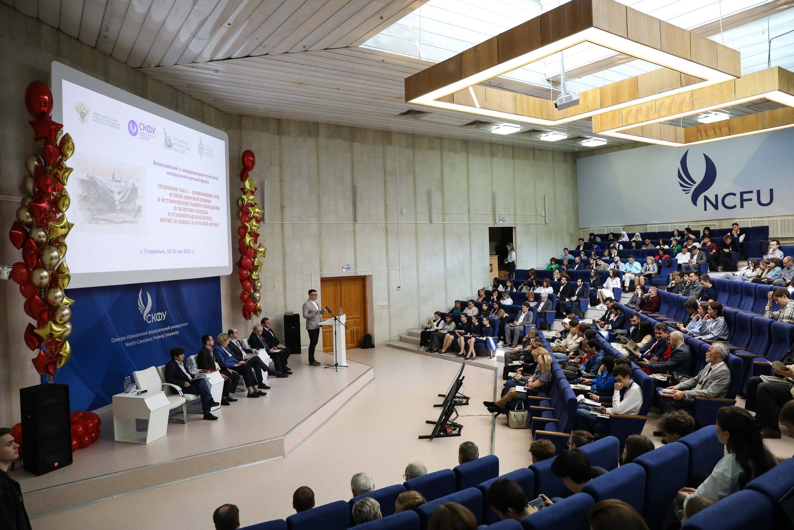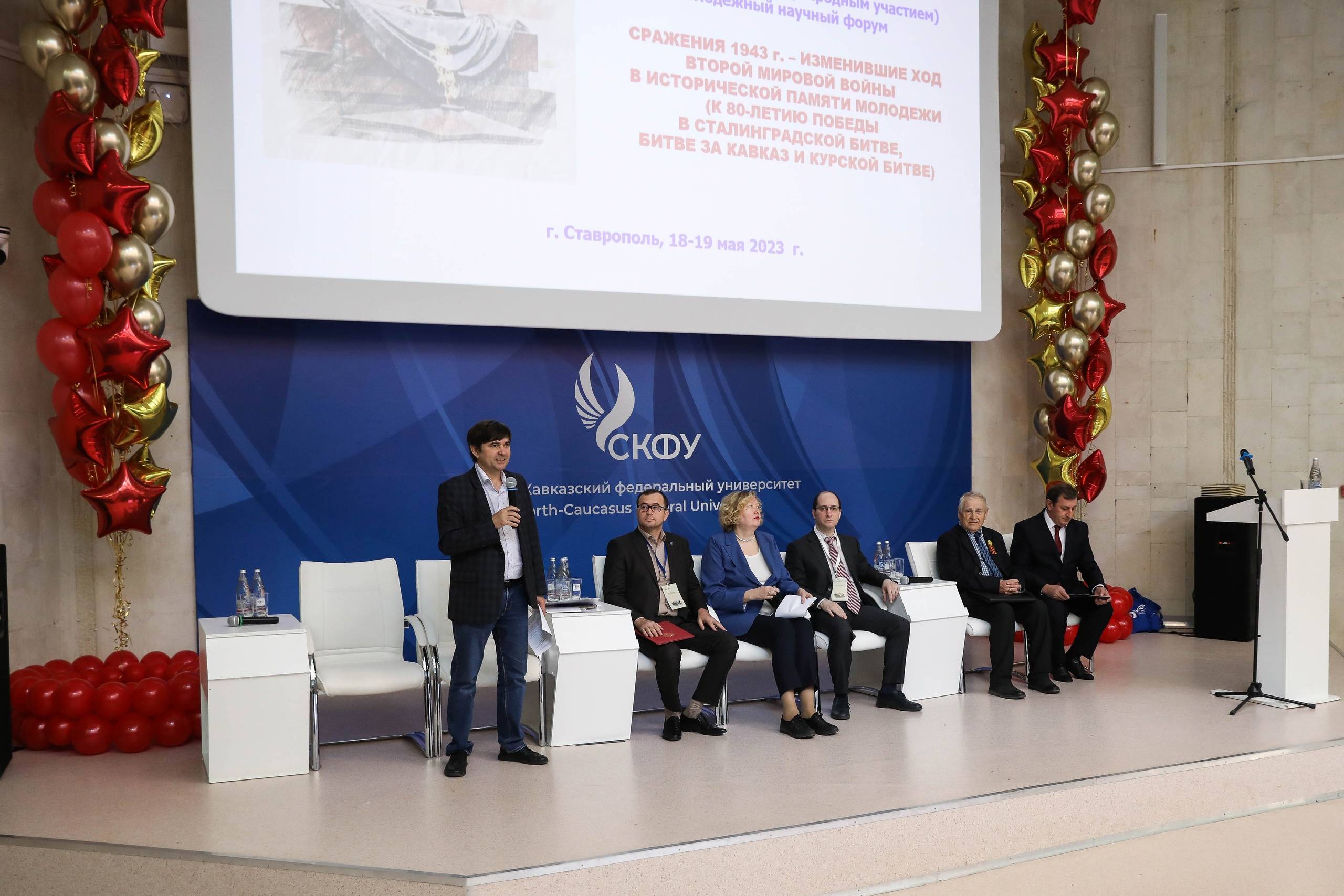 18-19 мая 2023 года на базе СКФУ прошел Всероссийский молодежный форум с международным участием «Сражения 1943 года, изменившие ход Второй мировой войны, в исторической памяти молодежи». Среди главных организаторов мероприятия кафедра истории России (зав. кафедрой – Колесникова М.Е., д.и.н., профессор, директор Гуманитарного института СКФУ, один из учредителей РО РВИО СК) и кафедра зарубежной истории, политологии и международных отношений (зав. кафедрой – Крючков И.В., д.и.н., профессор, один из учредителей РО РВИО СК) СКФУ.