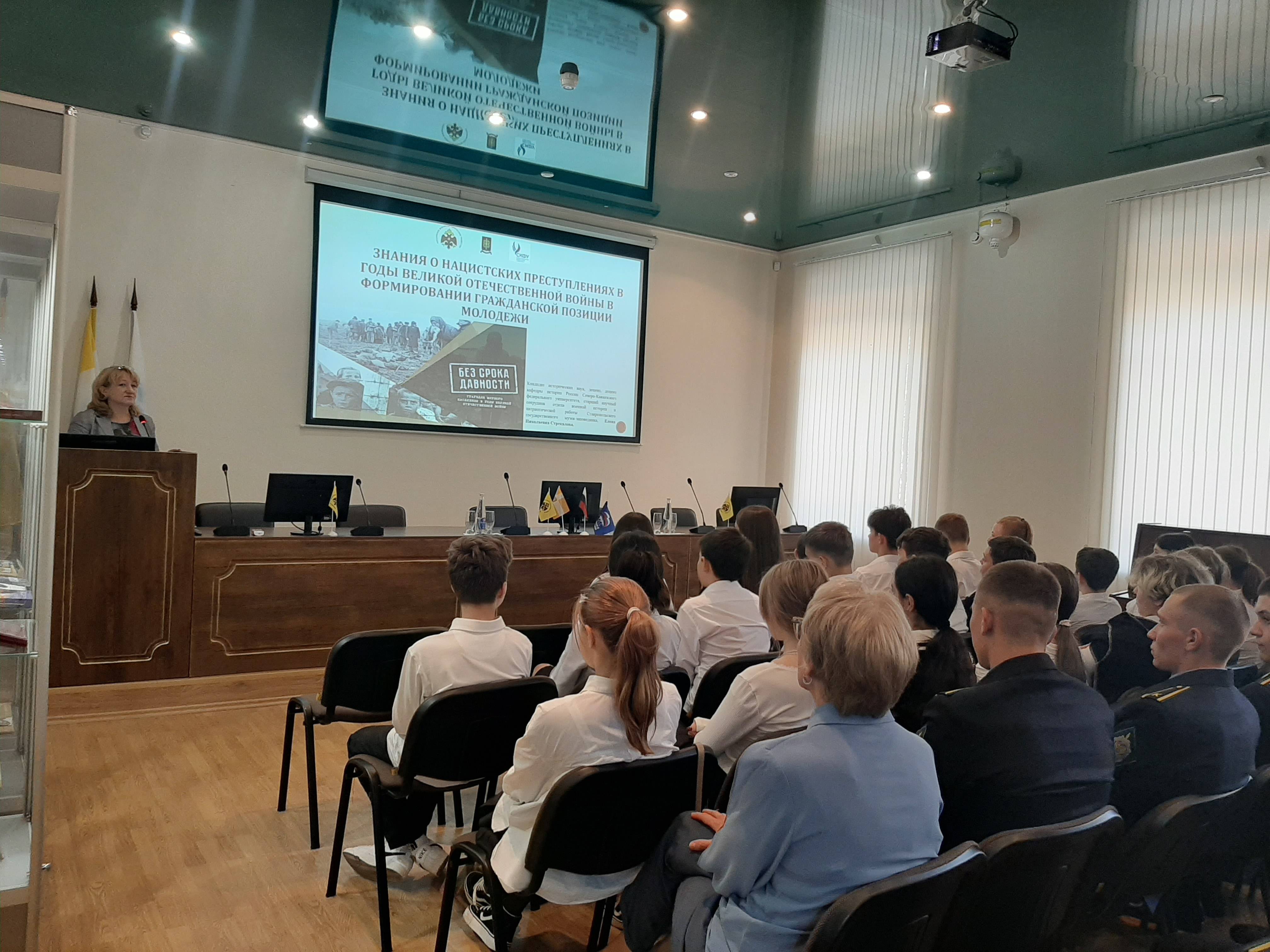 15 сентября 2023 года в конференц-зале Регионального отделения Российского военно-исторического общества в Ставропольском крае (РО РВИО СК) состоялась лекция «Знания о нацистских преступлениях в годы Великой Отечественной войны в формировании гражданской позиции молодежи».