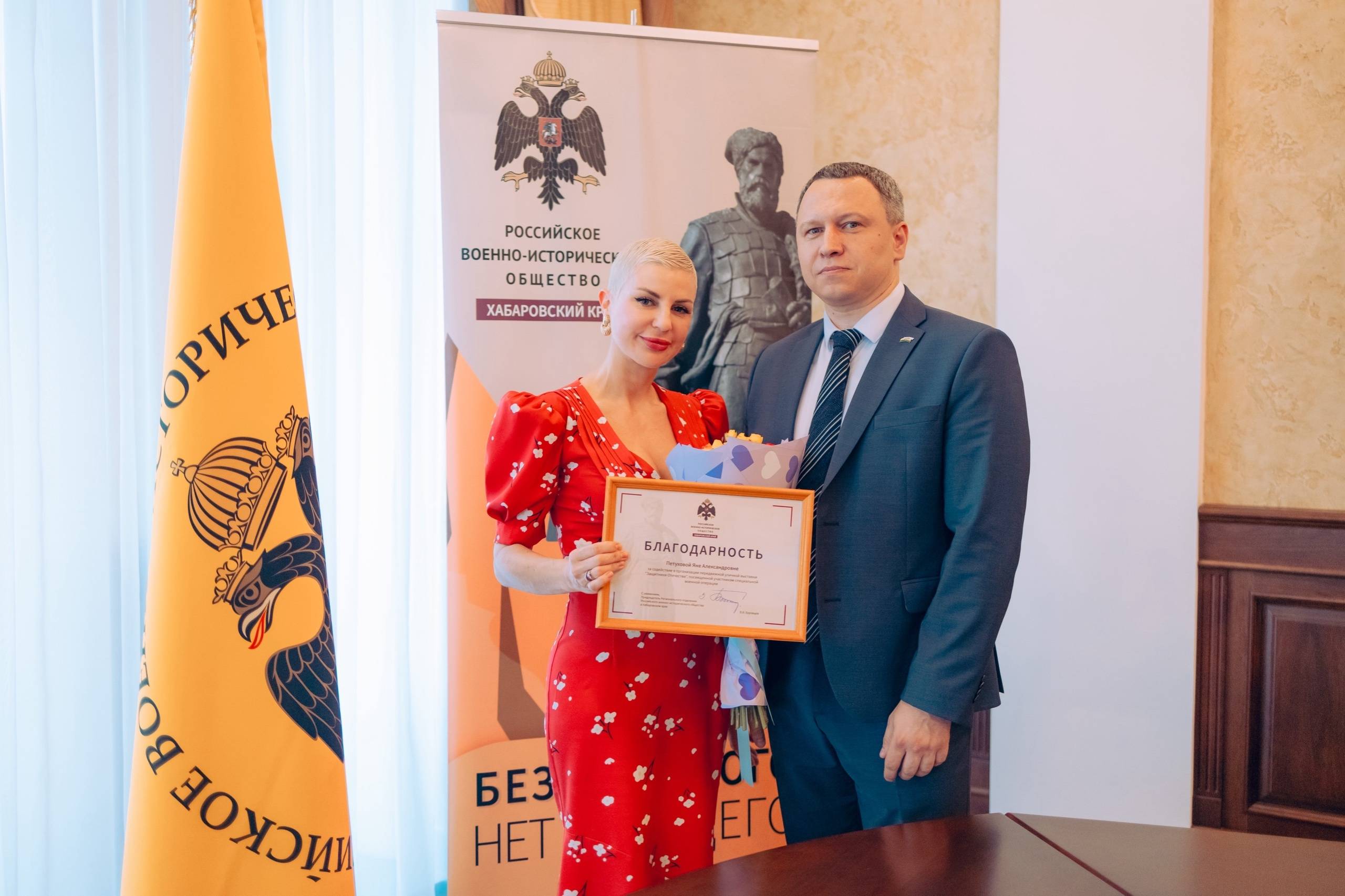 Благодарности вручал Гарбар А.В., директор СГИ ДВГУПС, заместитель председателя РО РВИО в Хабаровском крае.