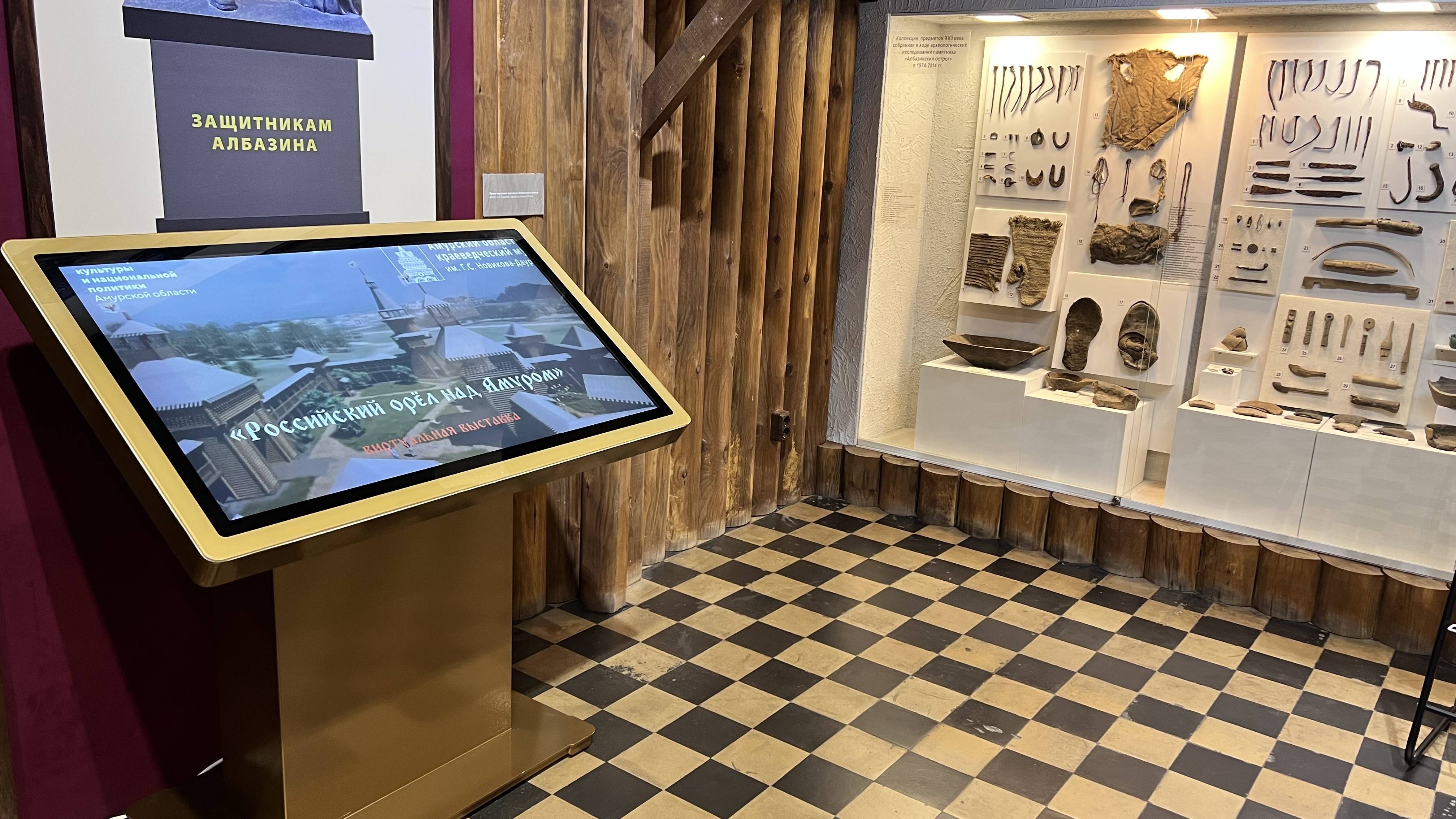 В голографической витрине представлены ролики с сюжетами о реликвиях и быте албазинцев. В плазменной панели демонстрируется фильм «Албазинские скаски» (автор сценария – Андрей Черкасов, режиссер – Мария Ховенко), посвящённый землепроходцам, их непростым судьбам, стойкости и характеру, которые позволили им покорить и освоить богатые, но суровые земли Дальнего Востока. Фильм создан при финансовой поддержке Фонда социально-ориентированных проектов и программ «Петропавловск».