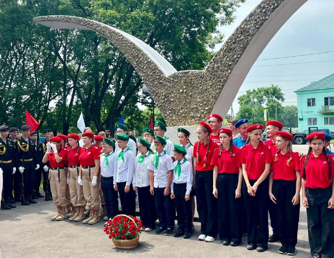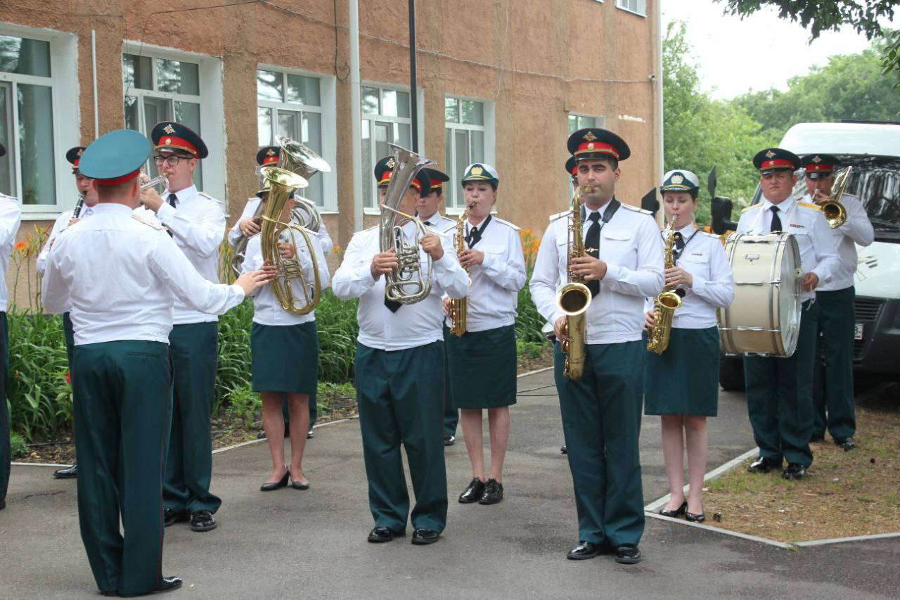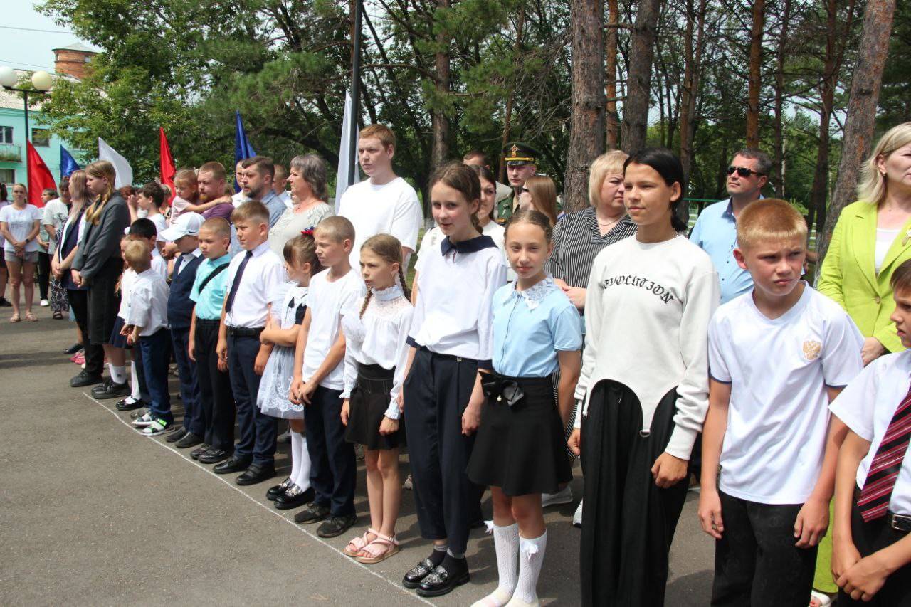 Под звуки военных мелодий военного оркестра ДВОКУ на школьном дворе собрались ученики и педагоги школы, юнармейцы, воспитанники отряда «Юные друзья пограничника «Дети границы», родные и близкие Виктора, жители села.