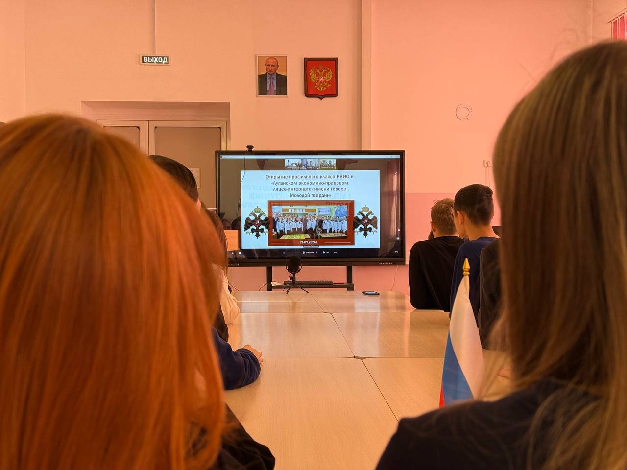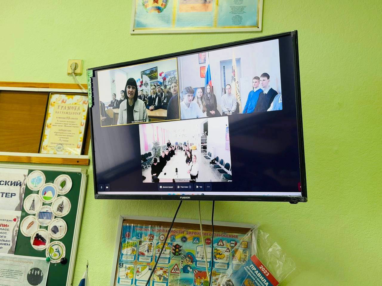 В телемосте участие приняли учащиеся 10 «А» класса школы №22 города Благовещенска имени Феликса Эдмундовича Дзержинского, лицеисты из Луганского экономико-правового лицея имени героев «Молодой гвардии» и Многопрофильного лицея №1 города Донецка.