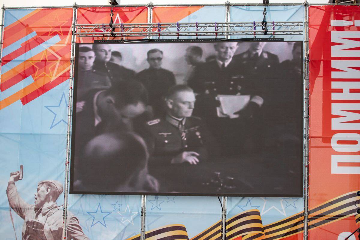 Он был показан на большом экране, установленном на площади Ленина. 80 лет назад именно в этот час - 00:00 по московскому и в 06:00 по благовещенскому времени в Берлине в зал для подписания акта о капитуляции были вызваны немецкие представители.