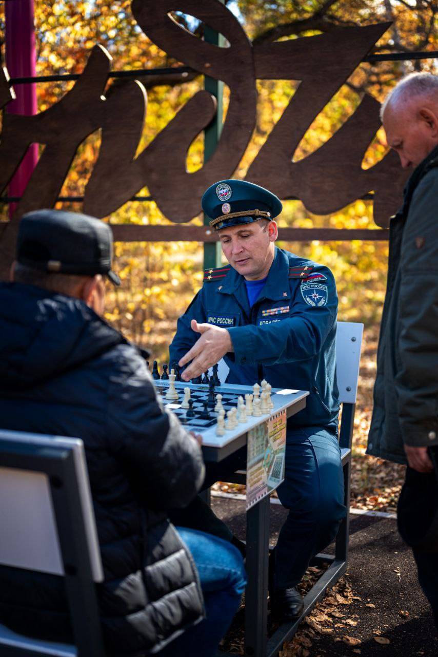 Не осталась в стороне и спортивная площадка. За шахматными столами, установленными РВИО, развернулись шахматные баталии. Играли и люди в форме, и школьники, и взрослые, и дети! Погода в этот день благоприятствовала.