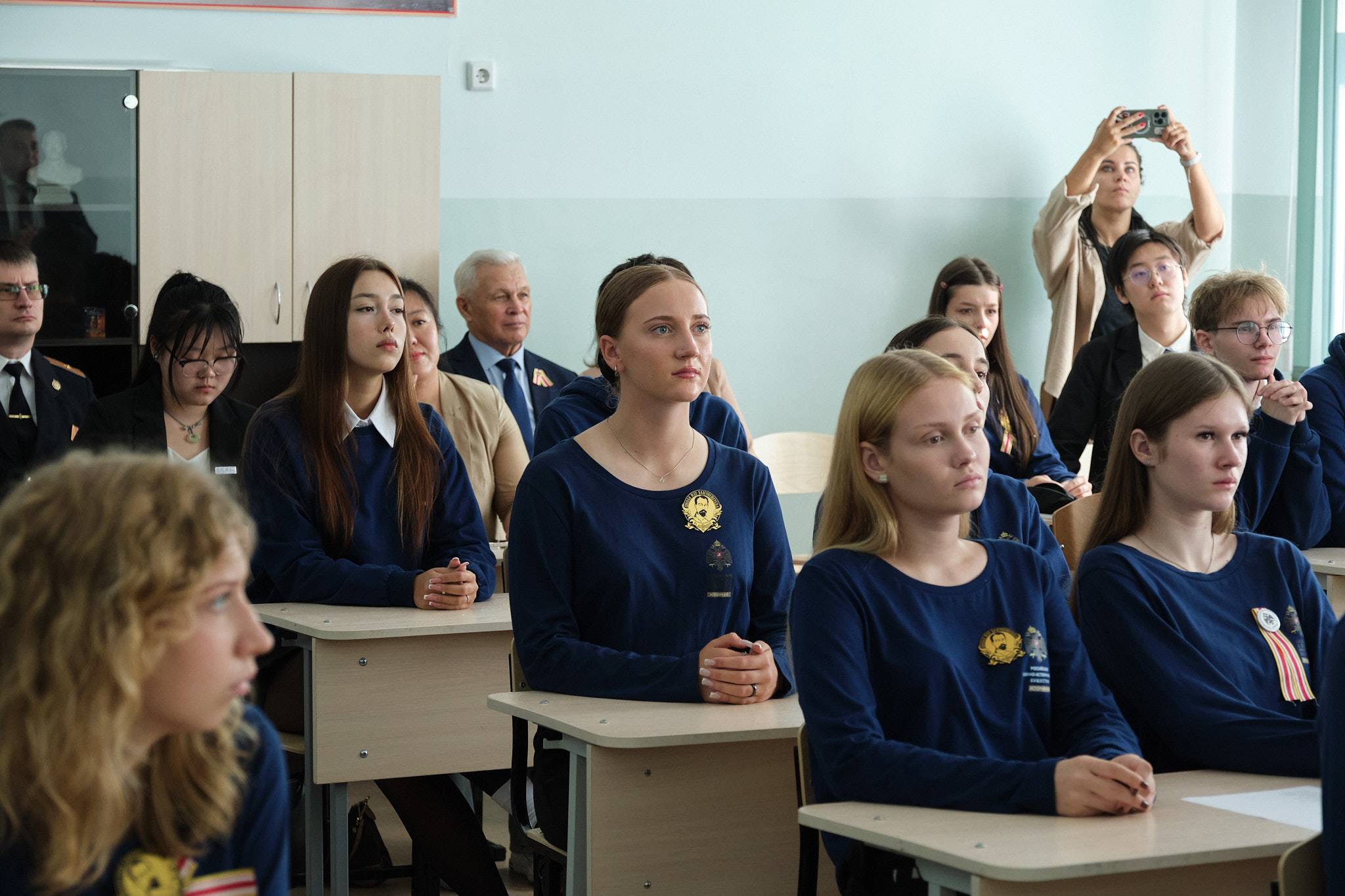 Открытие второго профильного класса РВИО в Амурской области - теперь еще больше наших учеников смогут углубленно изучать историю Отечества. Поздравить ребят пришли первый заместитель министра образования и науки Амурской области Елена Бурдуковская, заместитель председателя Совета Регионального отделения «Движения Первых» Амурской области Ирина Муллаева, председатель Благовещенской городской общественной организации "Ассоциация пожилых людей" Сергей Утенбергенов, который вовлекает учащихся школы в мероприятия по сохранению исторической памяти, представители РО РВИО в Амурской области, УФСБ России по Амурской области и другие.