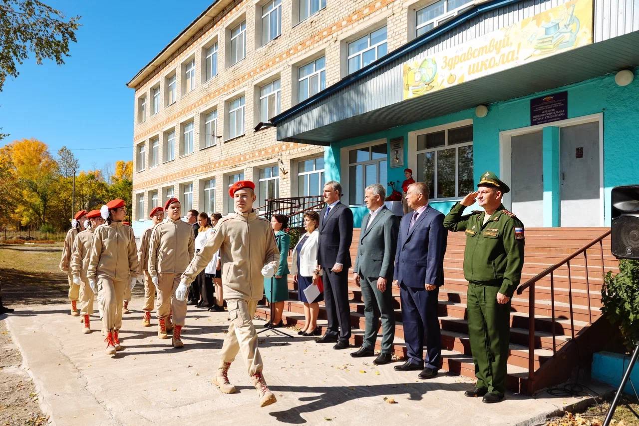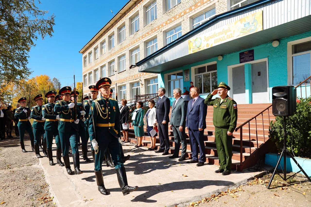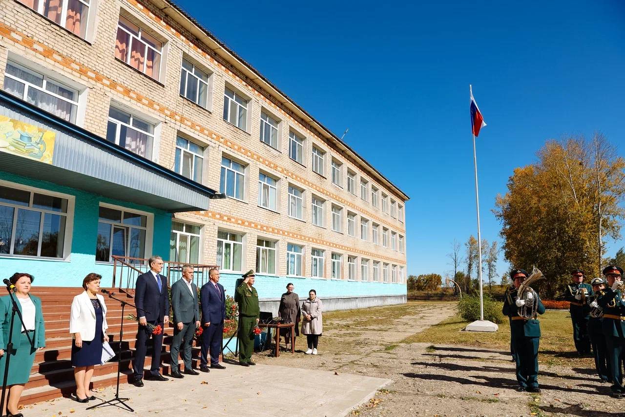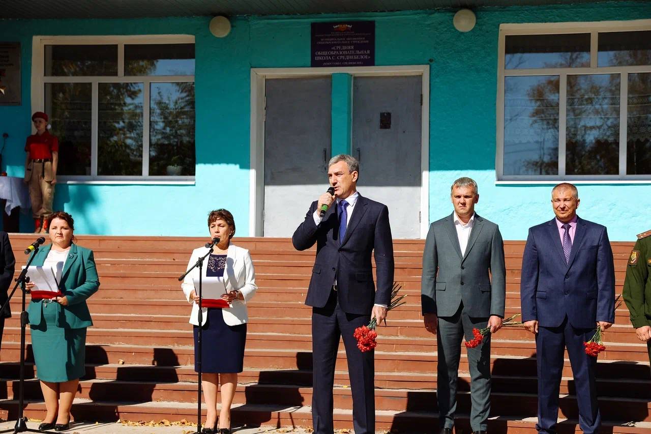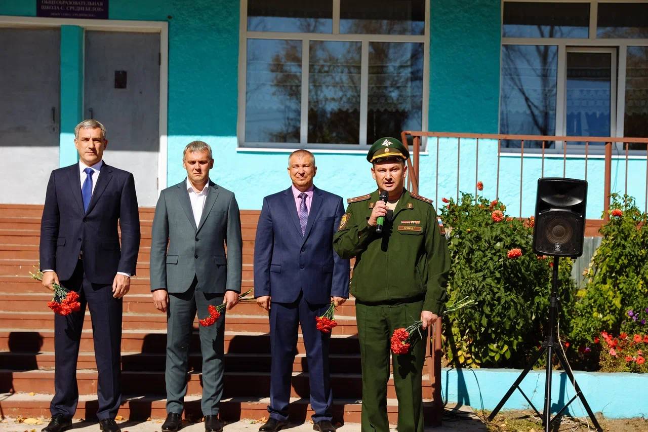 Памятную доску в честь Героя России Александра Аксенова открыли сегодня в селе Среднебелое Ивановского округа. Она разместилась на стене школы, которую в свое время закончил Александр Александрович. В торжественной церемонии, прошедшей под музыку военного оркестра, приняли участие Губернатор Василий Орлов, представители Законодательного Собрания Амурской области, ДВОКУ, военного комиссариата, друзья и одноклассники Героя.