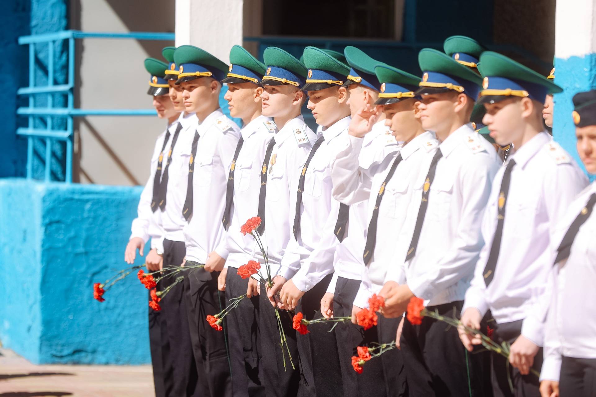 Мемориальную доску памяти Героя России, Андрея Иванова открыли его классный руководитель Наталья Моржева и воспитанник класса пограничного профиля Аким Якунин.