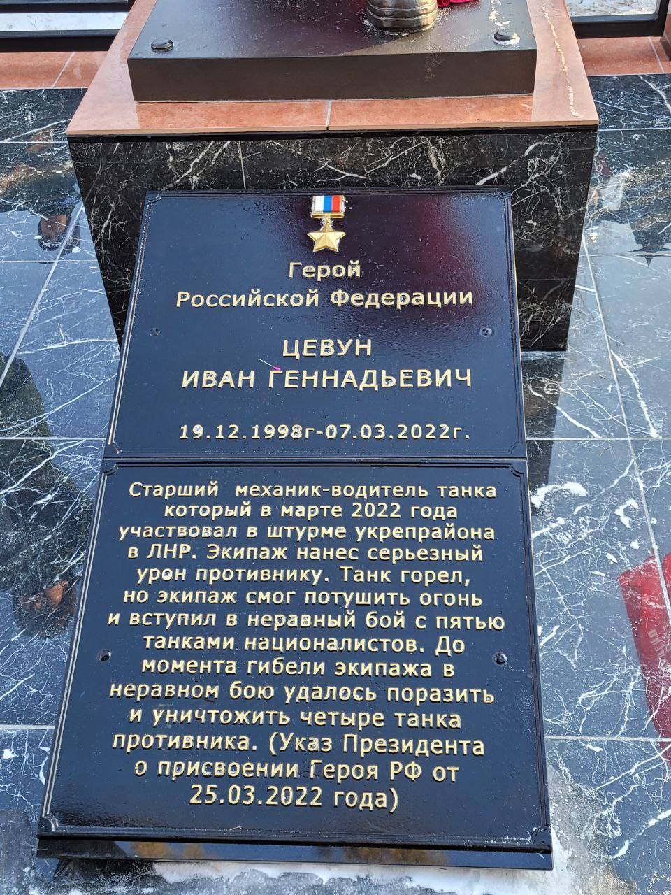 За мужество и героизм рядовому Ивану Геннадьевичу Цевуну Указом Президента Российской Федерации посмертно присвоено звание «Героя Российской Федерации».