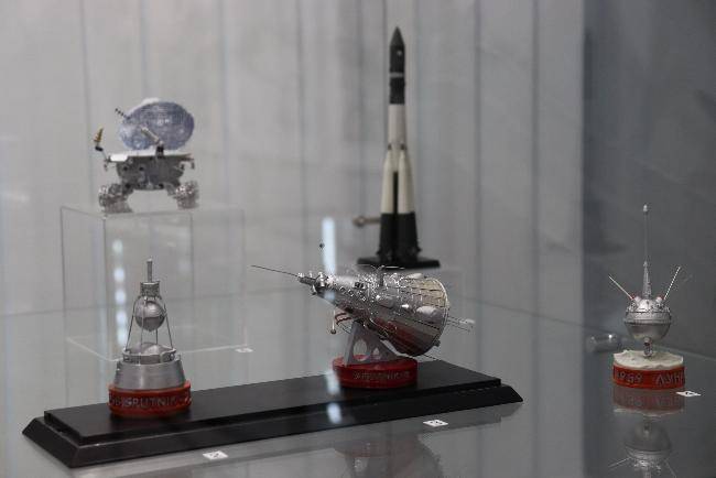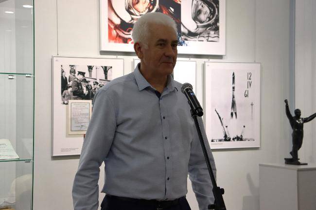 Виталий Богатырёв, Александр Свинкин и Александр Косьяненко представили на выставке уникальные экспонаты из своих личных коллекций, такие как марки, значки, монеты и макеты, связанные с космической тематикой.
