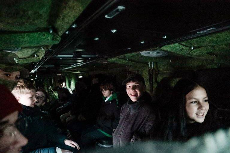 После переместились на строевой плац, где ровными рядами выстроились несколько единиц боевой техники. Военнослужащий отряда специального назначения «Ратник» СЗО Росгвардии Сергей рассказал ребятам технические особенности представленной боевой техники, ее предназначение в тех или иных условиях. На вопрос ребят, какими качествами должен обладать водитель такой техники, боец ответил: