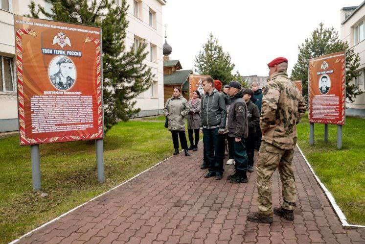 Начали с посещения Аллеи героев, где представлены портреты и краткие биографии людей, удостоенных почётного звания Героя Российской Федерации и подолгу службы связанных с Росгвардией.