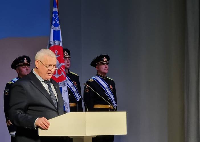 На торжественном мероприятии, посвященном 70-летию Государственного центрального морского ордена Ленина, ордена Нахимова полигона Министерства обороны России руководитель Архангельского регионального отделения Сергей Ковалев вручил приветственный адрес председателя Российского военно-исторического общества, помощника Президента России Владимира Мединского начальнику полигона контр-адмиралу Владимиру Босому.