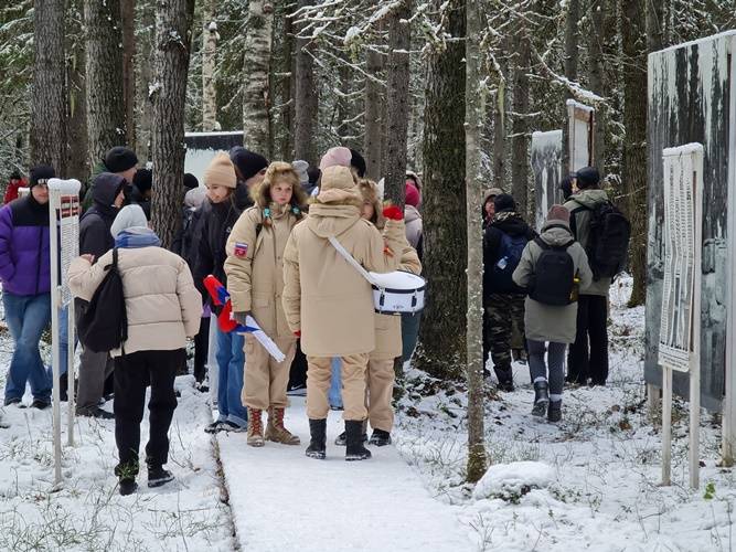 Целый спецпоезд привез в воскресенье на мемориальный комплекс «Юрьевский рубеж» более 300 человек. Курсанты Архангельского морского кадетского корпуса, студенты-историки САФУ, активисты Центра «Патриот», «Движения первых» и Юнармии, депутаты Государственной и Архангельской городской думы, члены областного Общественного совета, представители правительства Архангельской области, поисковики, члены Российского военно-исторического общества… Повод был. Мемориал открывал визит-центр, место, где можно будет и экспозицию осмотреть, и от непогоды укрыться.