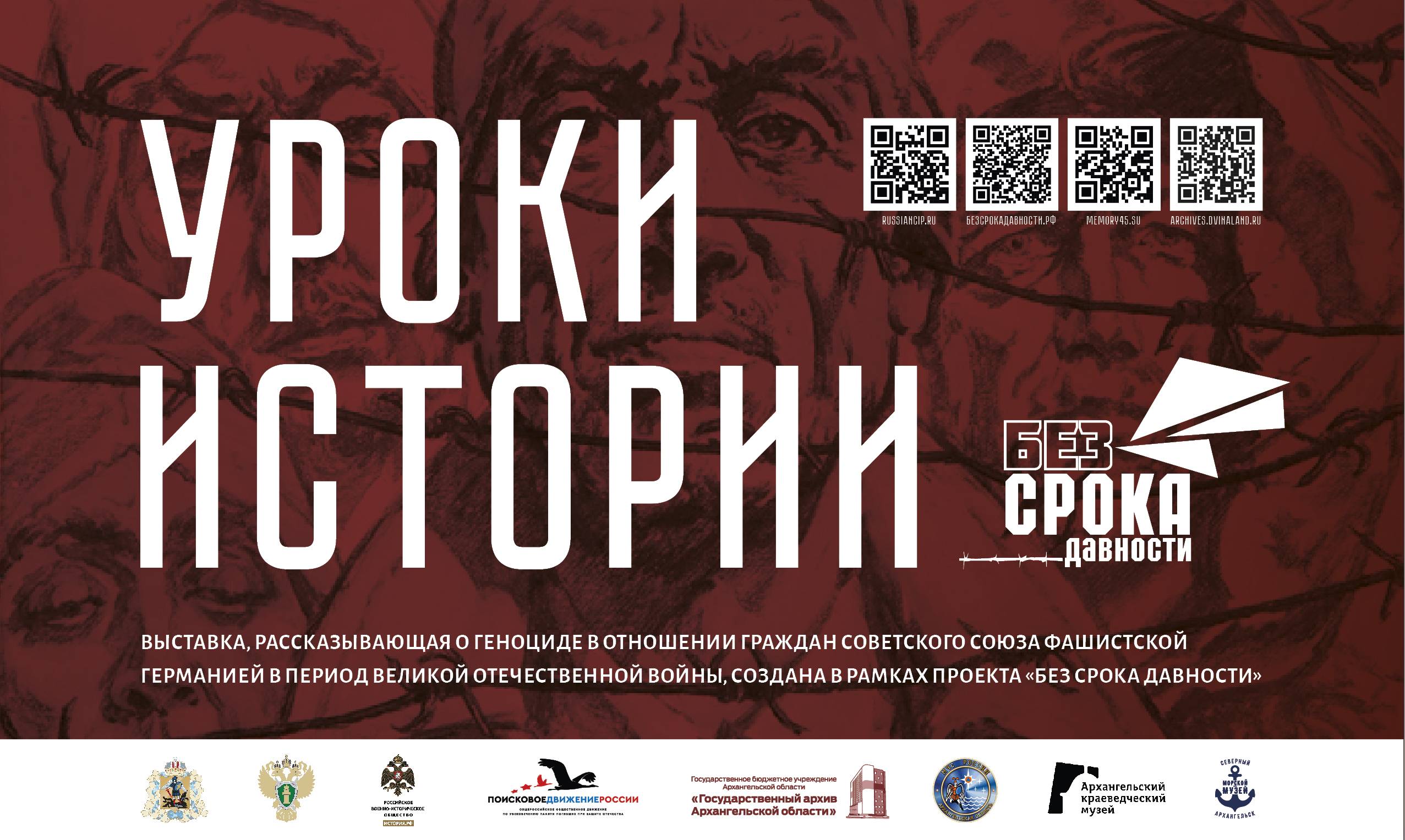 Выставка «Уроки истории» рассказывает о геноциде советского народа, проводимом фашистской Германией в период Великой Отечественной войны и о геноциде, осуществленном на территории Архангельской области.