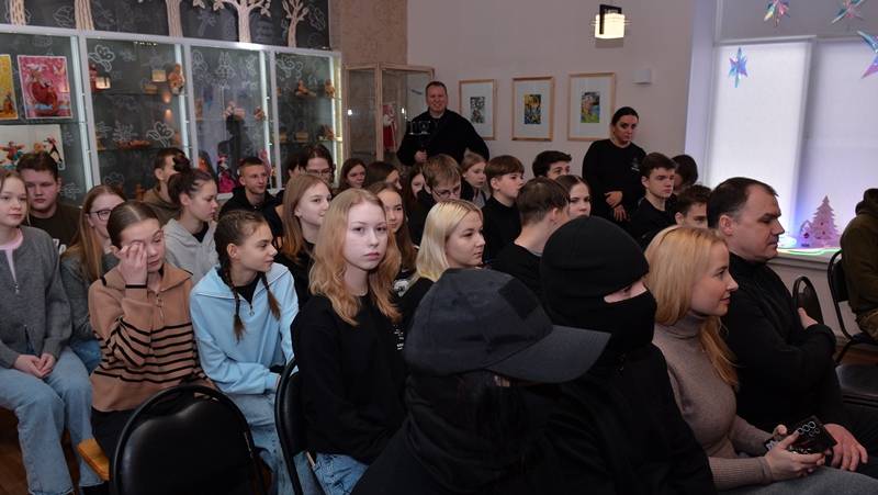 По приглашению директора местной школы Ильи Тюрина, со старшеклассниками, учащимися профильного класса Российского военно-исторического общества, встретились волонтёры движения «Ангелы Фронта», во главе с его руководителем Алексеем Осмоловским, и ветераны специальных подразделений Росгвардии.