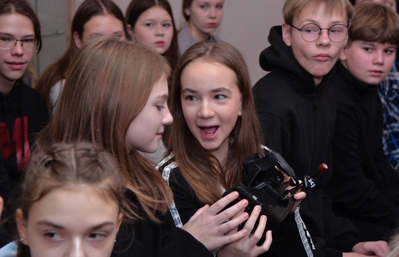 Однако самым запоминающимся моментом для ребят стала возможность на минуту почувствовать себя настоящими операторами. С помощью специальных очков они смогли ощутить, что значит управлять дроном в полёте.
