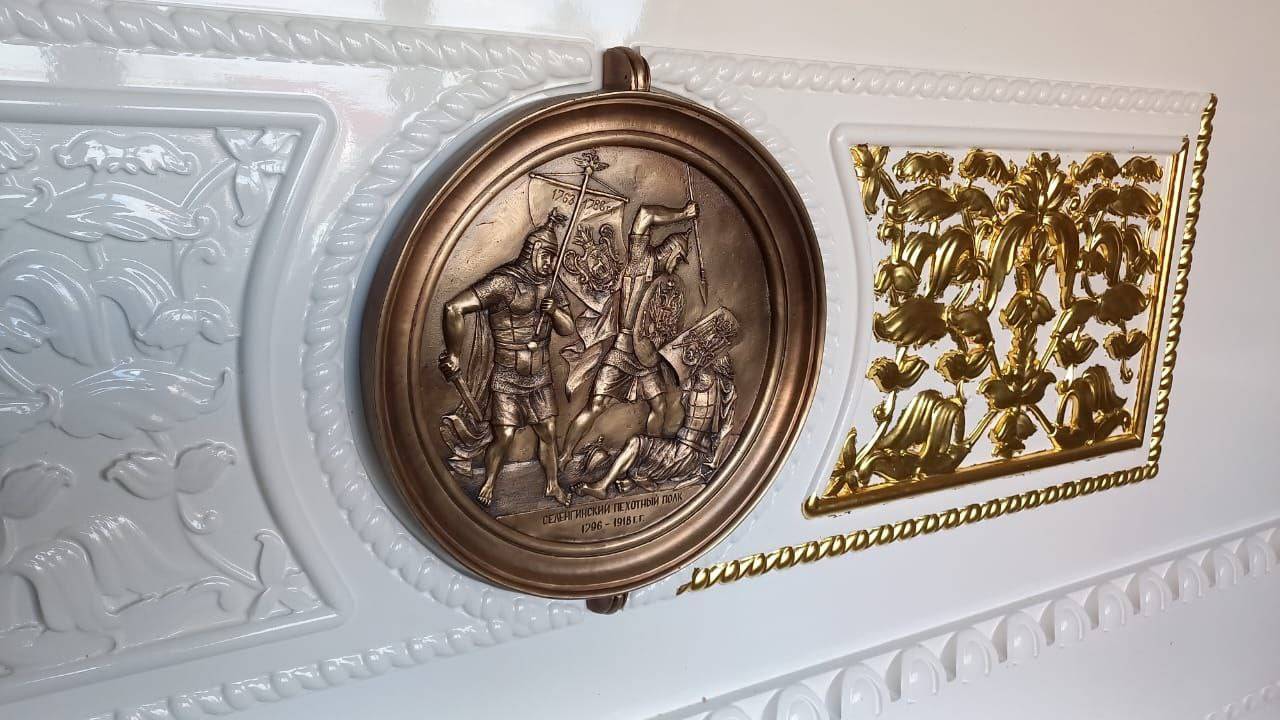 Художниками проекта, при консультационной помощи регионального отделения РВИО был разработан эскиз бронзового барельефа нижней части тумбы иконостаса Воскресенской церкви. В качестве образца были взяты медальоны, посвященные Отечественной войне 1812 года Ф. Толстого, изображающие аллегорические фигуры воинов.