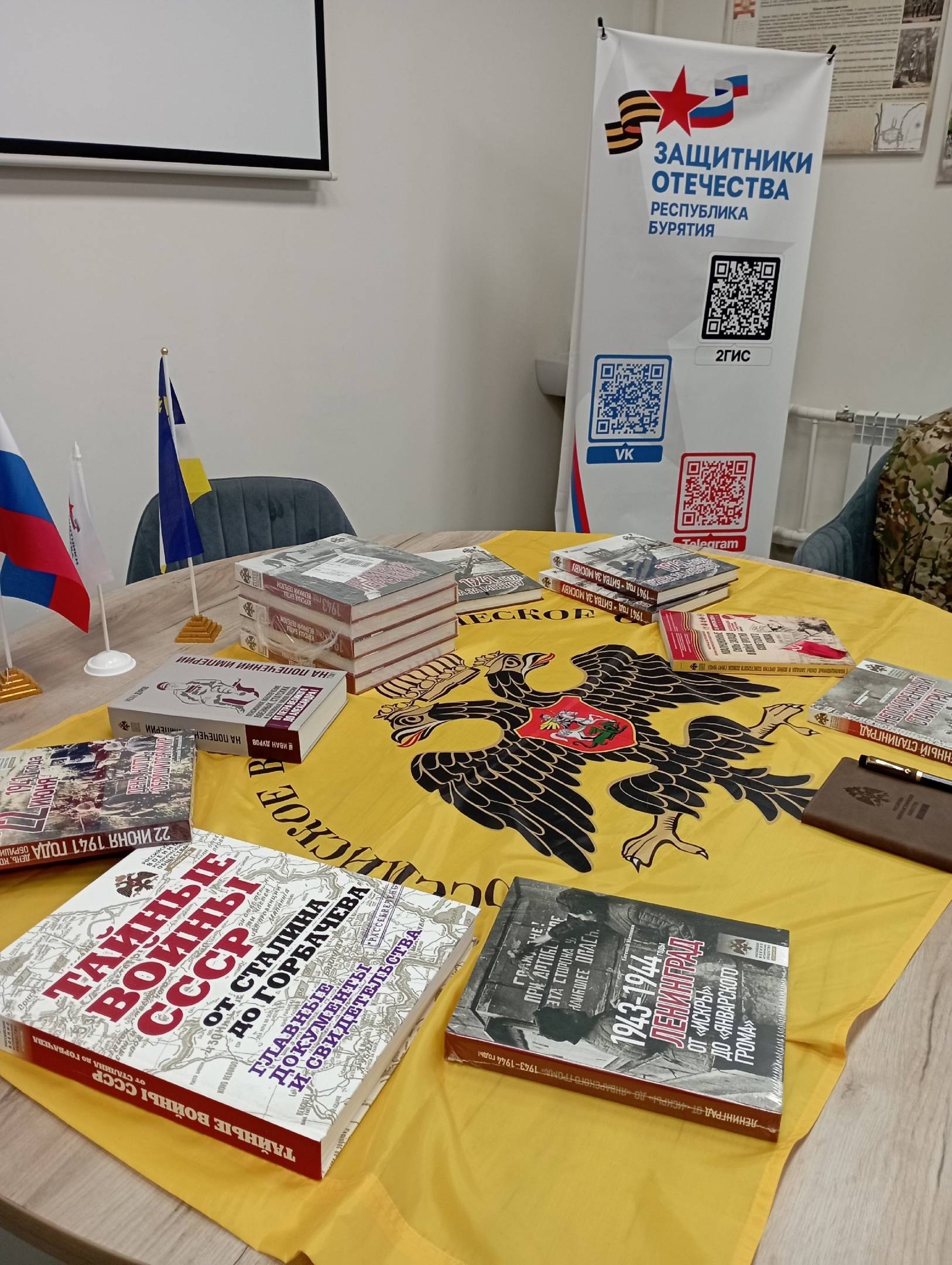 В Республике Бурятия выходят книги, изданные под эгидой регионального отделения РВИО. Ряд книг были переданы в военно-историческую библиотеку общества. Книга "Чиндалей в памяти Победы" подготовлена членом РВИО Б.-Ж. Б. Дармаевым и является образцом познания истории страны через микроисторию небольшого бурятского села, выходцы из которого защищали страну, трудились в тылу. В книге история семей связывает прошлое и настоящее, автор на этом примере раскрывает многие актуальные вопросы, стоящие перед современным обществом. Один из авторов книги "Геноцид детей на оккупированных Германией территориях СССР", Л.К. Синегрибов, малолетний узник фашистских лагерей, издатель газеты "Судьба", всю свою жизнь посвятивший сохранению памяти и развенчанию фашистских преступлений. Леонид Кириллович попросил передать эту книгу персонально В.Р. Мединскому. В свою очередь в Бурятию поступают книги изданные РВИО. Комплект книг передан в экспозицию по военной истории, размещенную в Фонде "Защитники Отечества", для использования в просветительской, исследовательской работе.