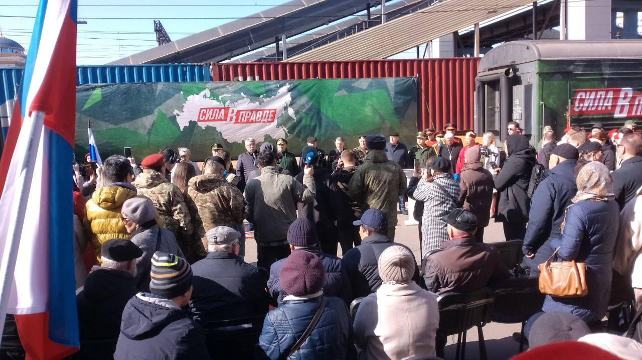 10 апреля в г. Улан-Удэ прибыл тематический поезд "Сила в правде". В экспозиции были представлены образцы военной и специальной техники, интерактивные площадки, тематические вагоны "Оружие особого рода", "Этих дней не смолкнет слава" и другие. Встречающая сторона так же роазвернула тематические экспозиции, рассказывающие о патриотической и волонтерской работе. Члены регионального отделения РВИО подготовили и представили выставку, посвященную Великой Отечественной войне 1941-1945 гг., на которой все желающие могли ознакомится с образцами стрелкового оружия, подлинными предметами того времени.