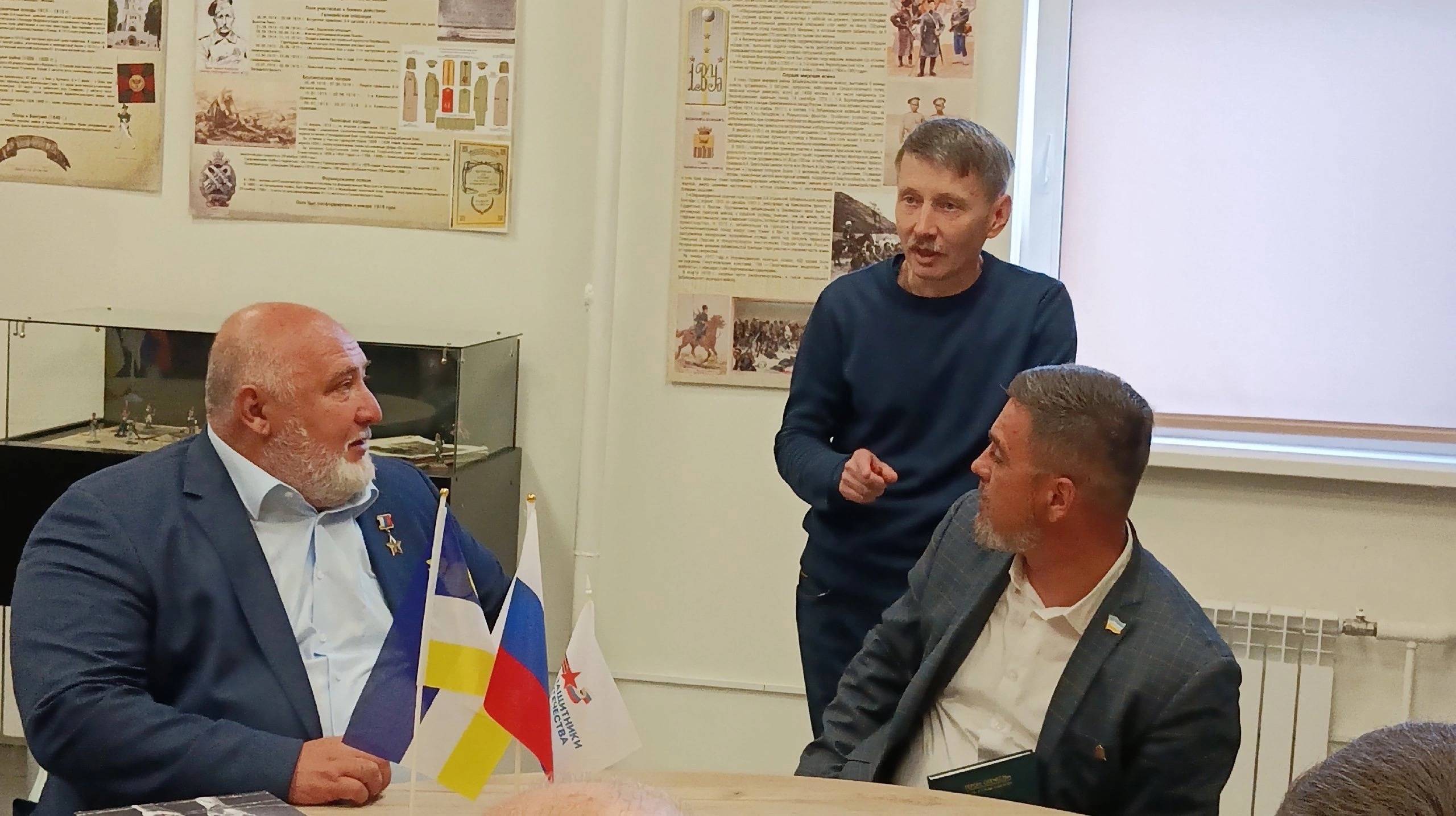14 сентября в филиале фонда "Защитники Отечества" состоялась встреча с Героем России Алексеем Викторовичем Романовым, в ходе заинтересованного разговора был представлен опыт работы регионального отделения РВИО в Республике Бурятия и предложения по дальнейшему сотрудничеству. Руководитель регионального отделения рассказал о работе общества, региональных проектах - Фестивале исторической реконструкции, Военно-патриотической смене, поисковой работе. Отдельно был представлена работа по исторической реконструкции, в рамках которой на базе филиала Фонда "Защитники Отечества" было создано выставочное пространство во военной истории. В беседе принимал участие Леонид Кириллович Синегрибов, главный редактор газеты "Судьба" Международного союза малолетних узников фашистских лагерей, были затронуты вопросы необходимости сохранения исторической памяти, в том числе активнее раскрывать факты преступлений фашистов на международном уровне.