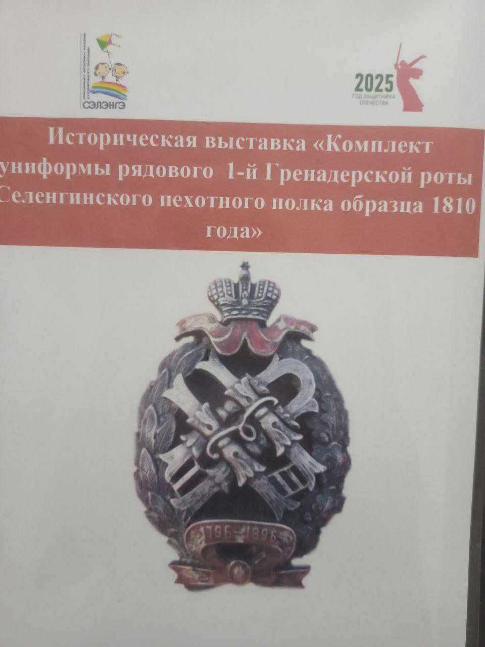 Местное отделение РВИО Селенгинского района подготовило выставку, посвященную униформе Селенгинского полка в честь дня его формирования 29 ноября 1796 г. Выставка установлена в администрации Селенгинского района, здесь представлен комплект униформы рядового Селенгинского пехотного полка, образца 1810 года. Именно в такой форме солдаты полка принимали участие Отечественной войне 1812 г. сражались под Смоленком и при Бородино.