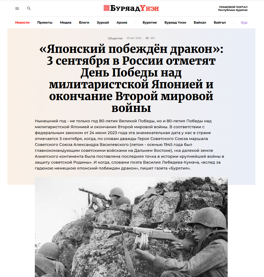 В преддверии Дня Победы над Японией, М.А. Харитонов, руководитель регионального отделения РВИО дал большое интервью, в котором рассказал об историческом значении этой Победы, важности сохранения исторической памяти, семейной истории. https://burunen.ru/news/society/139206-yaponskiy-pobezhdyen-drakon-3-sentyabrya-v-rossii-otmetyat-den-pobedy-nad-militaristskoy-yaponiey-i-/