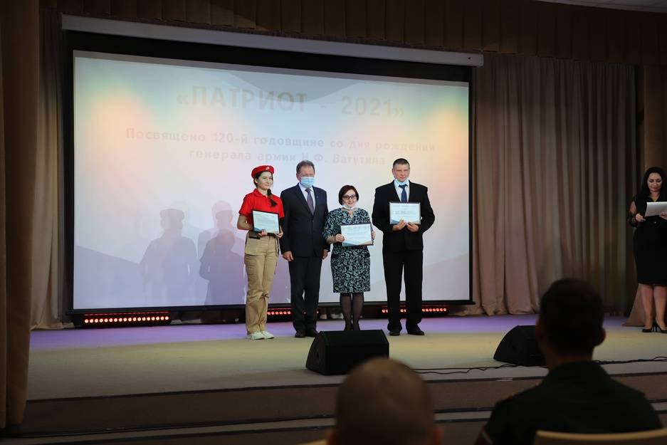 16 декабря в городе Валуйки во Дворце культуры и спорта состоялось мероприятие «Патриот 2021», посвящённое 120-летию со дня рождения прославленного земляка, Героя Советского Союза, генерала армии Николая Фёдоровича Ватутина. В мероприятии приняли участие внук полководца Александр Берджихович Ватутин. Состоялась торжественная церемония вручения премии «Патриот». Премии были удостоены представители культуры, образования, социальной сферы района за вклад в сохранение исторической памяти, патриотическое воспитание подрастающего поколения и юные валуйчане, добившихся наиболее высоких результатов в учёбе, спорте, общественной жизни, победители и призёры районных, областных конкурсов и соревнований. Среди награждённых – коллектив Валуйского историко-художественного музея, который возглавляет член РВИО Войцеховская Марина Дмитриевна. На мероприятии были вручены Благодарности Регионального отделения РВИО в Белгородской области активистам и членам РВИО за большой вклад в патриотическое воспитание подрастающего поколения, активное участие в мероприятиях, посвященных 120-летию Героя Советского Союза, генерала армии Н.Ф. Ватутина.