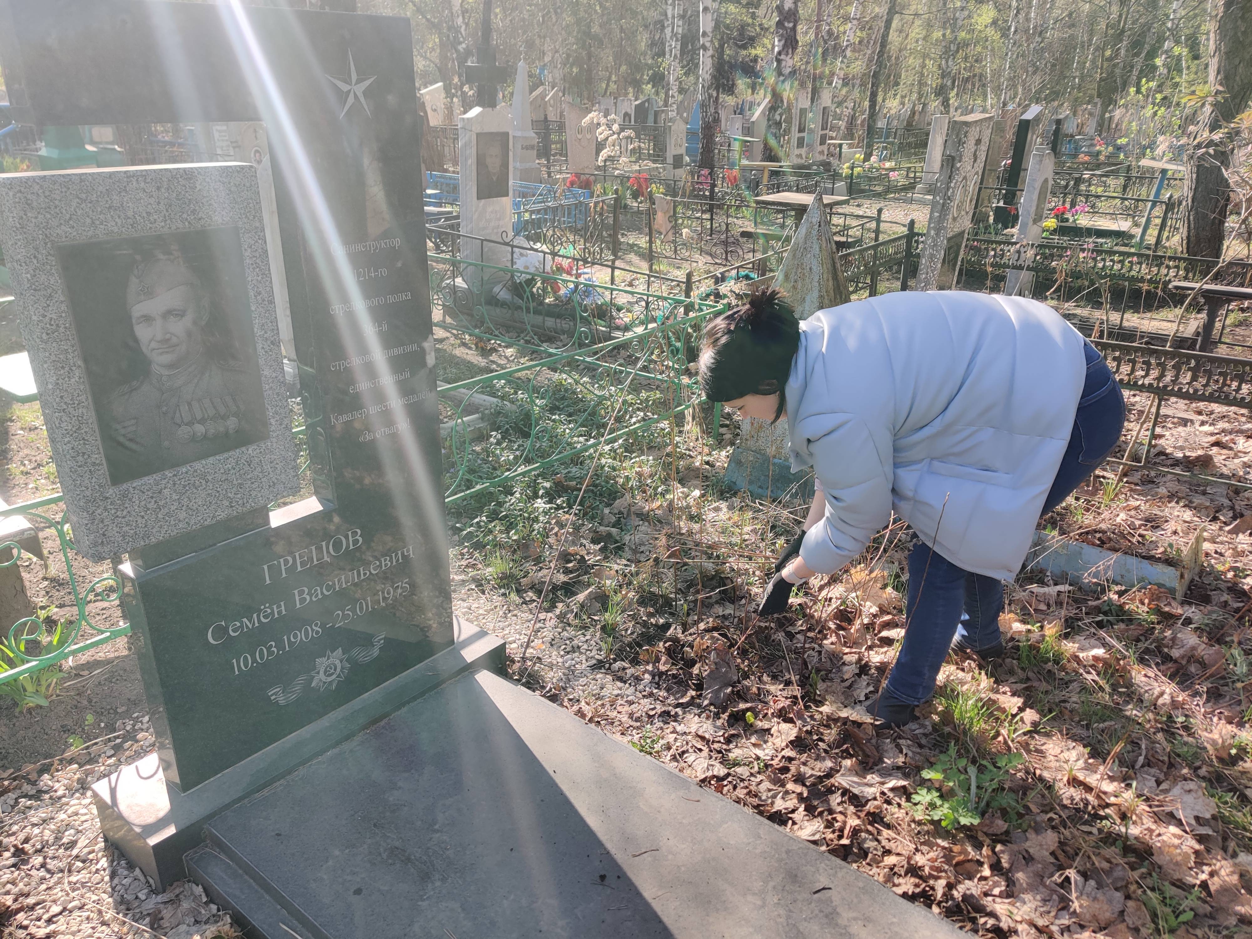 Члены Старооскольского местного отделения РВИО посетили Старое городское кладбище и привели в порядок могилу фронтовика, кавалера шести медалей «За отвагу» Семена Васильевича Грицова.