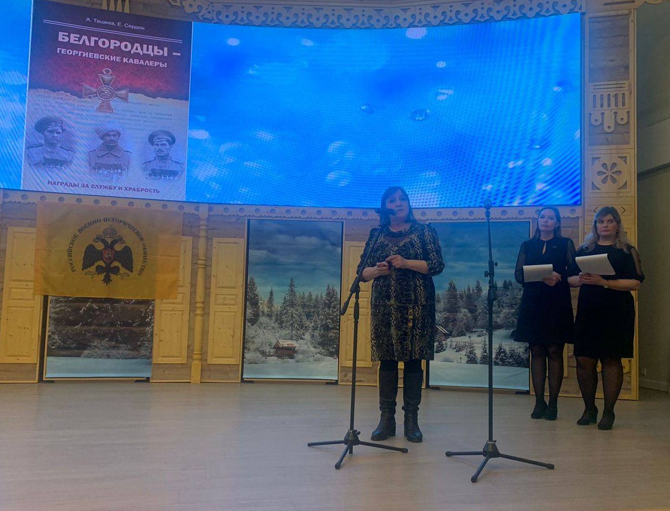 Белгородское региональное отделение Российского военно-исторического общества представило книгу «Белгородцы – Георгиевские кавалеры». Презентацию провели в Музее народной культуры. На встрече присутствовали члены регионального отделения РВИО, члены поисковых клубов, историки, краеведы, журналисты. Открыл мероприятие председатель Белгородского местного отделения РВИО Николай Васильевич Картавенко. Авторы издания Андрей Тащеев и Елена Сердюк рассказали, что работа над книгой велась два года: изучали документы, делали запросы в архивы и музеи, общались с потомками воинов, удостоенных награды. Итогом исследования стал сборник, тиражом 800 экземпляров с краткими биографиями и описанием подвигов полутора тысяч белгородцев, награжденных Георгиевскими крестами и медалями «За храбрость» в период русско-японской войны (1904-1905) годы и Первой мировой (1914-1918). Гостям рассказали не только о создании нового справочника, но и показали документальный фильм об истории происхождения почётной награды, её преемственности в советское время. Георгиевские награды есть и в государственной наградной системе Российской Федерации. Среди современных Георгиевских кавалеров – уроженец города Губкина – Николай Бантюков. Георгиевский крест он получил за мужество и героизм, проявленные в миротворческой операции в Грузии. Авторы надеются, что судьбы и подвиги героев книги, станут моральным и нравственным ориентиром для будущих и нынешних защитников Отечества. Книга «Белгородцы – Георгиевские кавалеры» будет передана в библиотеки и музеи области, пополнит фонды краеведческой литературы в школах. Экземпляры книги с автографами авторов получили все гости презентации.