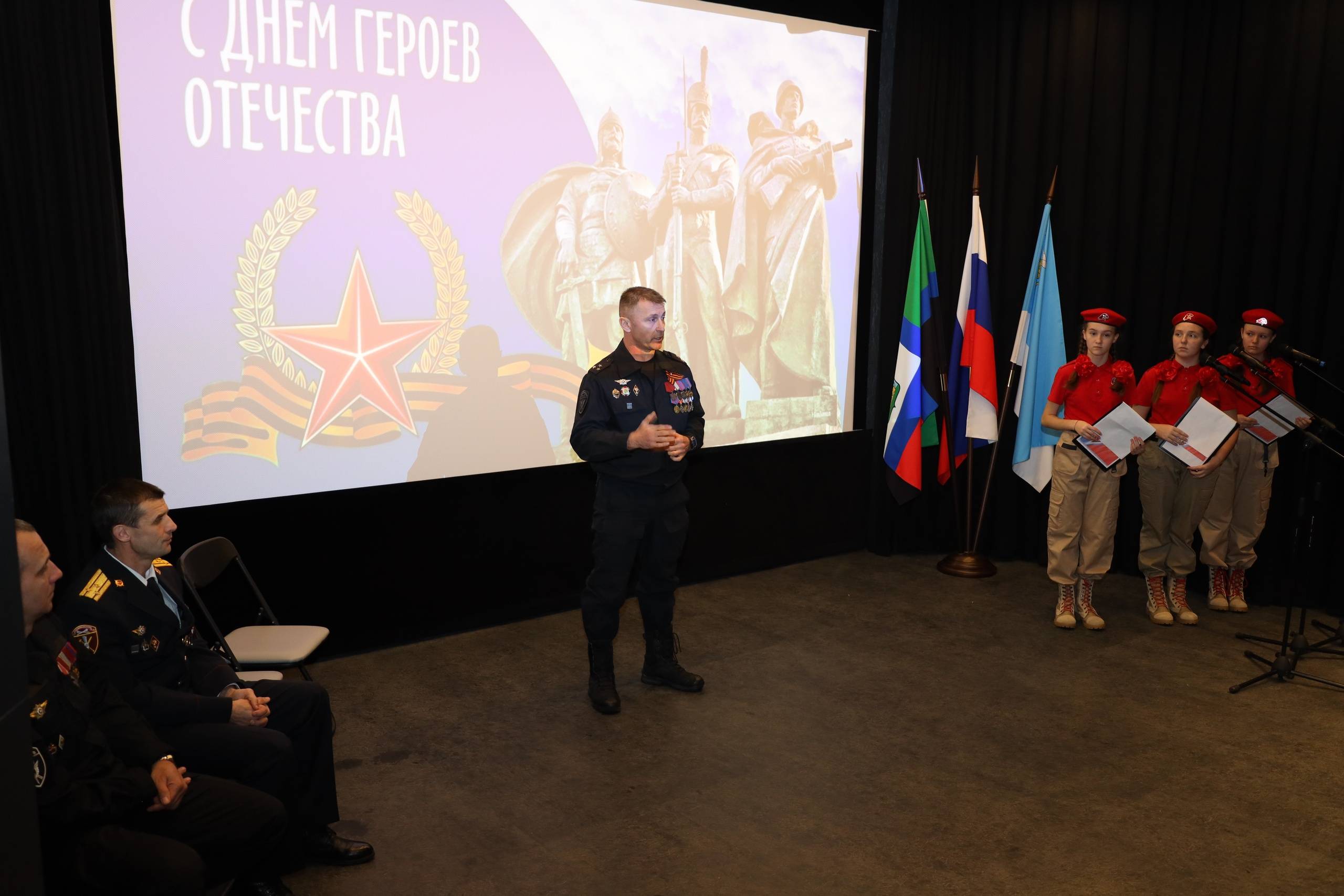 В преддверии Дня Героев Отечества в музее-диораме "Курская битва.Белгородское направление"состоялся патриотический вечер «Время правды». Мероприятие прошло в формате круглого стола, в котором участвовали школьники «Пролетарской СОШ №1» Ракитянского района, представители СОБР «Белогор» Управления Росгвардии по Белгородской области. Гости вечера вспомнили белгородцев – Героев Советского союза и России, а также участников специальной военной операции. Для гостей мероприятия юнармейский отряд им. Р.В. Бочарова «Пролетарской СОШ №1» подготовил творческие номера памяти выпускника школы, ветерана СОБР «Белогор» Росгвардии, подполковника полиции в отставке Романа Бочарова, который героически погиб 22 марта 2023 года в ходе СВО. Роман Бочаров награждён орденом Мужества посмертно. 9 декабря в музее-диораме состоялась торжественная церемония награждения финалистов и призёров проекта «О родине, о доблести, о славе», реализуемого при поддержке Президентского фонда культурных инициатив в рамках совместного проекта с Белгородским отделением международного общественного фонда «Российский фонд мира».