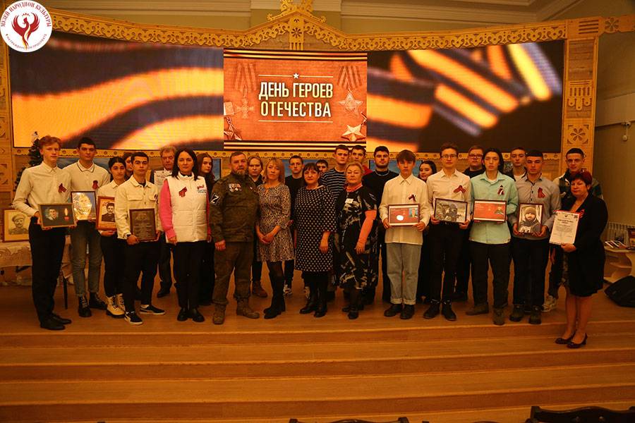 8 декабря в Белгородском государственном музее народной культуры состоялась музейная гостиная, посвященная Дню Героев Отечества. В организации и проведении мероприятия приняли участие исполнительный директор Регионального отделения Российского военно-исторического общества в Белгородской области Елена Сердюк и участник СВО Михаил Якименко, а также студенты Белгородского строительного колледжа и Белгородского техникума общественного питания – члены патриотических клубов, их преподаватели, члены РВИО Ирина Панченкова и Виктор Панченков, Участники встречи говорили о том, что День героев Отечества неразрывно связан с историей России. Он знаменует подвиги всех, кто своими делами, поступками, своей жизнью показал пример подлинного служения Родине.